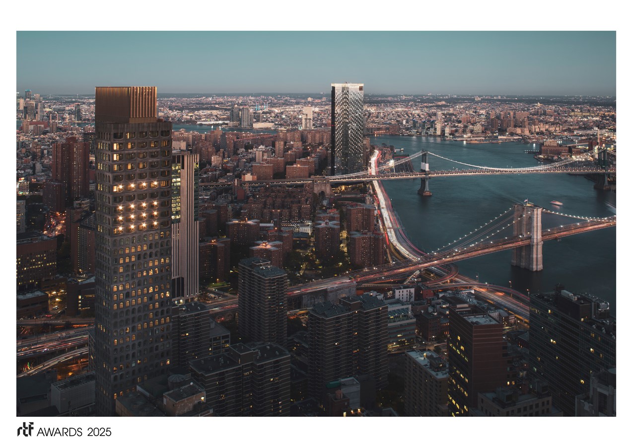 130 William is the firm’s first high-rise residential tower in the United States. Rising 800 feet (244 meters), the 66-story luxury condominium is an elegant insertion into the dense Manhattan cityscape, carving a distinctive silhouette within the city’s iconic skyline.