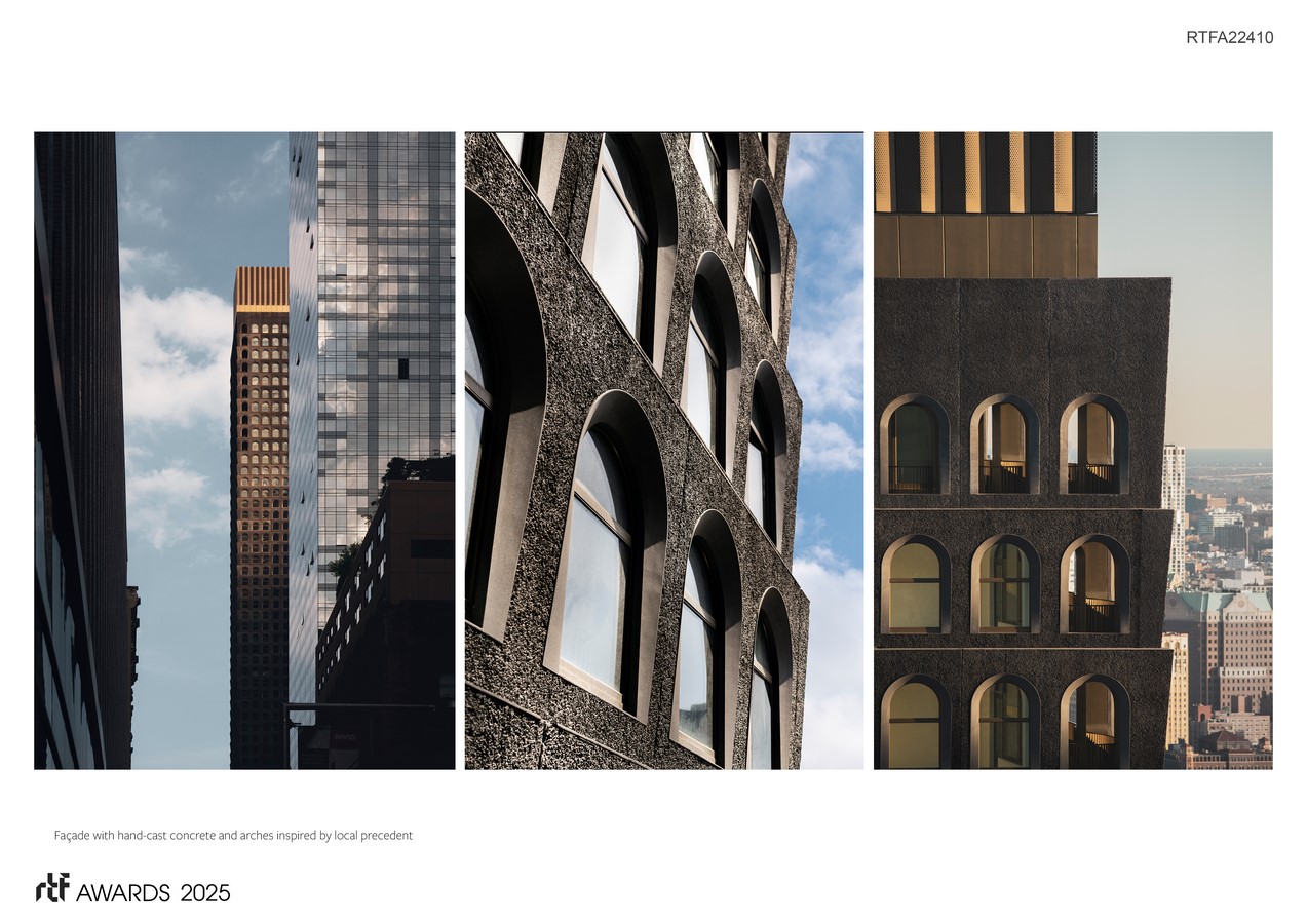 The residences, ranging in size from studio residences to up to four bedrooms, incorporate luxurious interior finishes made of materials sourced from around the world. There is a true sense of craft in the details and materiality. Each residence is crafted with airy interiors framed by oversized bronze arched windows. Complementing the refined nature of the building, custom designed fixtures and hardware in a beautiful burnished bronze finish. The top ten residential floors are home to the Penthouse and Loggia Residences. The interiors are comprised of generously-scaled rooms and loft-like ceilings that flow seamlessly into expansive outdoor spaces with unprecedented views. The Loggia terraces flank these residences from end to end, providing significant outdoor space starting at over 600′ in the air.