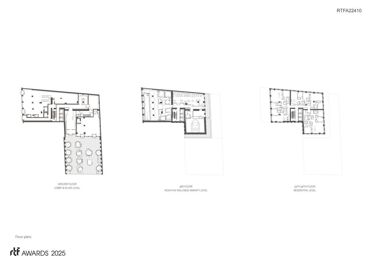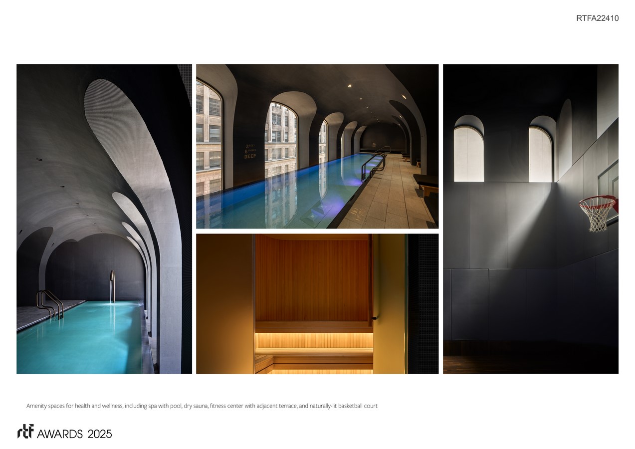 Conceived as a vertical microcity, 130 William’s program includes a new public plaza park; ground floor retail; two extensive floors of amenities including a health club, fitness center, movie theatre, and outdoor terraces; residences ranging from one- to four-bedroom layouts; and a rooftop observatory deck—all of which support the building’s residential community and work to redefine the possibility of the vertical urban neighbourhood.
