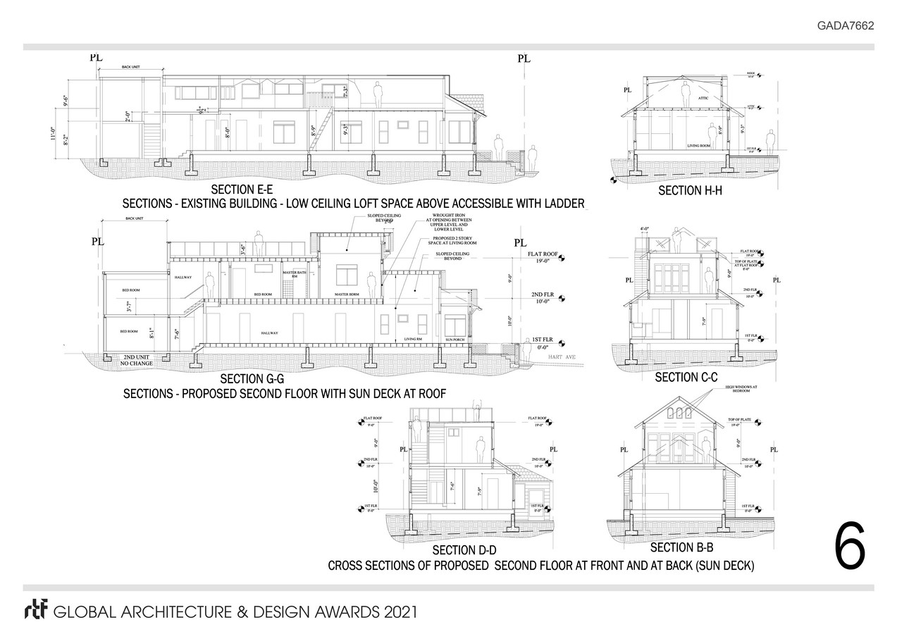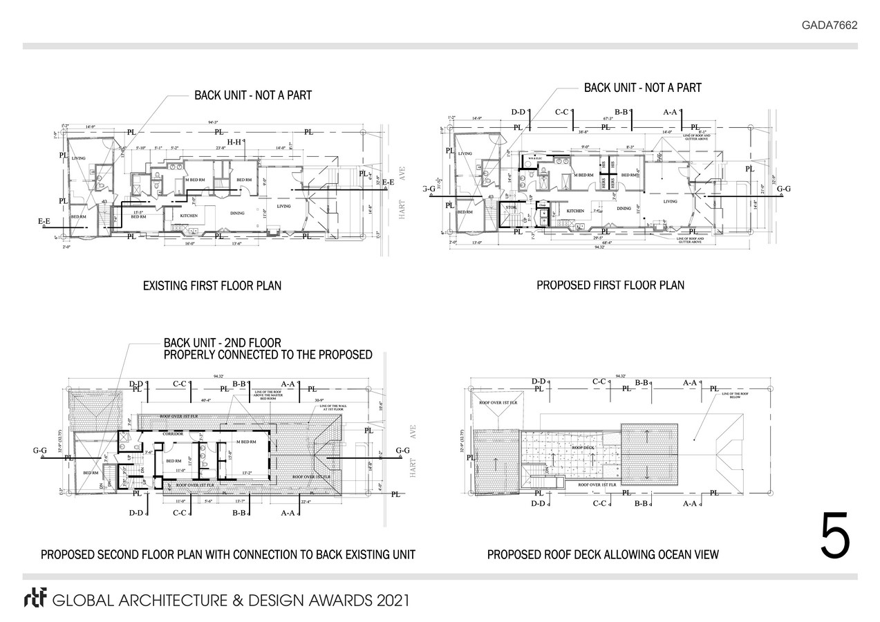 The project will restore the windows and siding to its original design. The project now offers a second floor with two bedrooms and amenities. Project also now offers a new roof/deck that allows for an ocean view. In addition the relationship between the front and back units has been resolved with proper corridors and circulation making the project respectful of its original design.