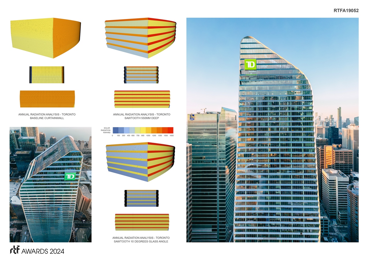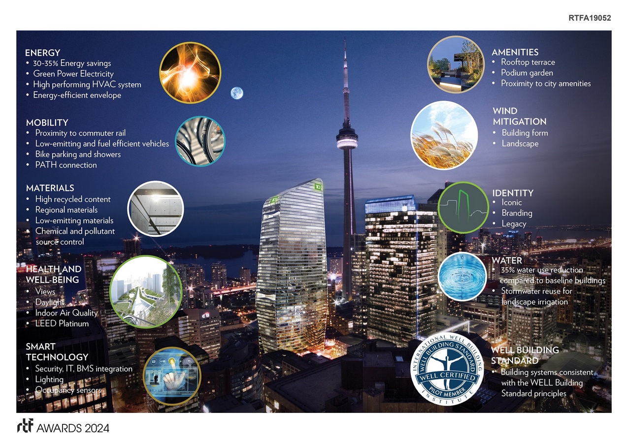 160 Front Street, now TD Terrace Tower for the main tenant TD Canada Trust, alters the Toronto skyline with a shape that was sculpted in response to extensive environmental site analysis.