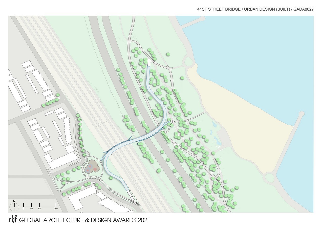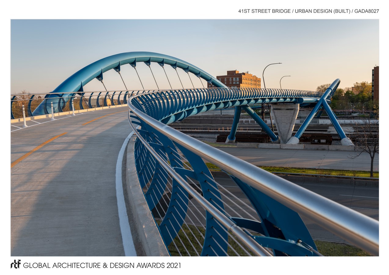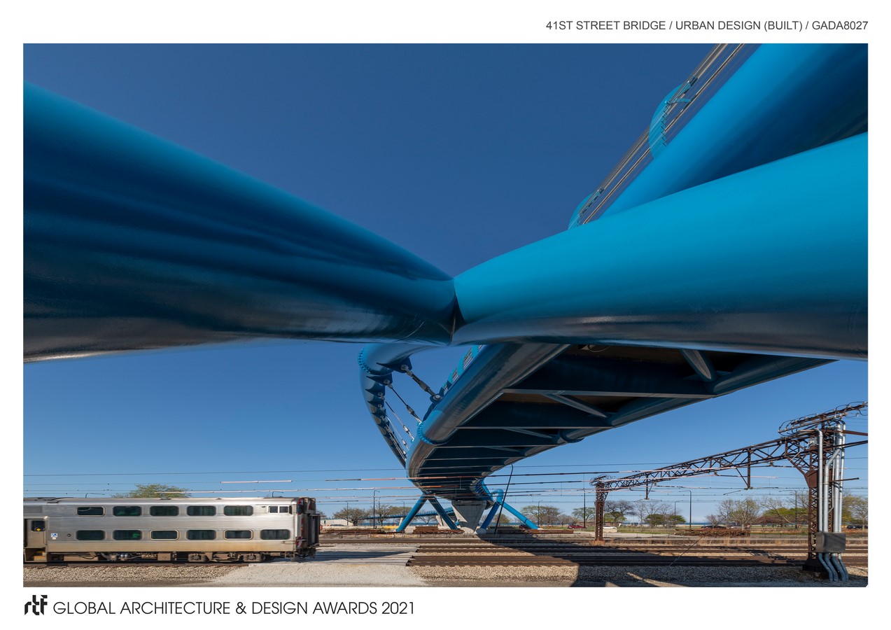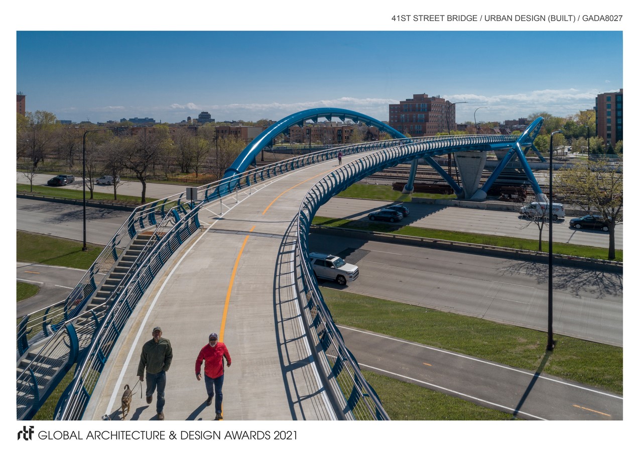 The 41st Street Bridge, the result of an international competition called “Bridging the Drive,” is a major civic project that provides bicycle and ADA-compliant pedestrian, wheelchair, and stroller lakefront access for a long-underserved area of Chicago.