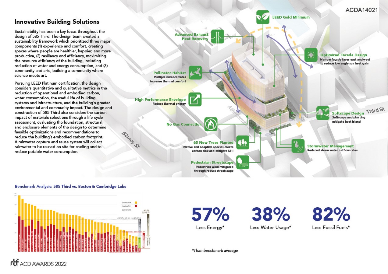 Consultants: BioMed Realty, RedGate, Suffolk Construction, BR+A Consulting Engineers, McNamara Salvia Structural Engineers, VHB, Michael Van Valkenburgh Associates, Theatre Projects, Heintges, Jensen Hughes, Buro Happold, Jaffe Holden Associates, Acentech, VDA, St. Onge, Entek Engineering, Lam Partners, Kalin Associates, RWDI, arkaSpecs