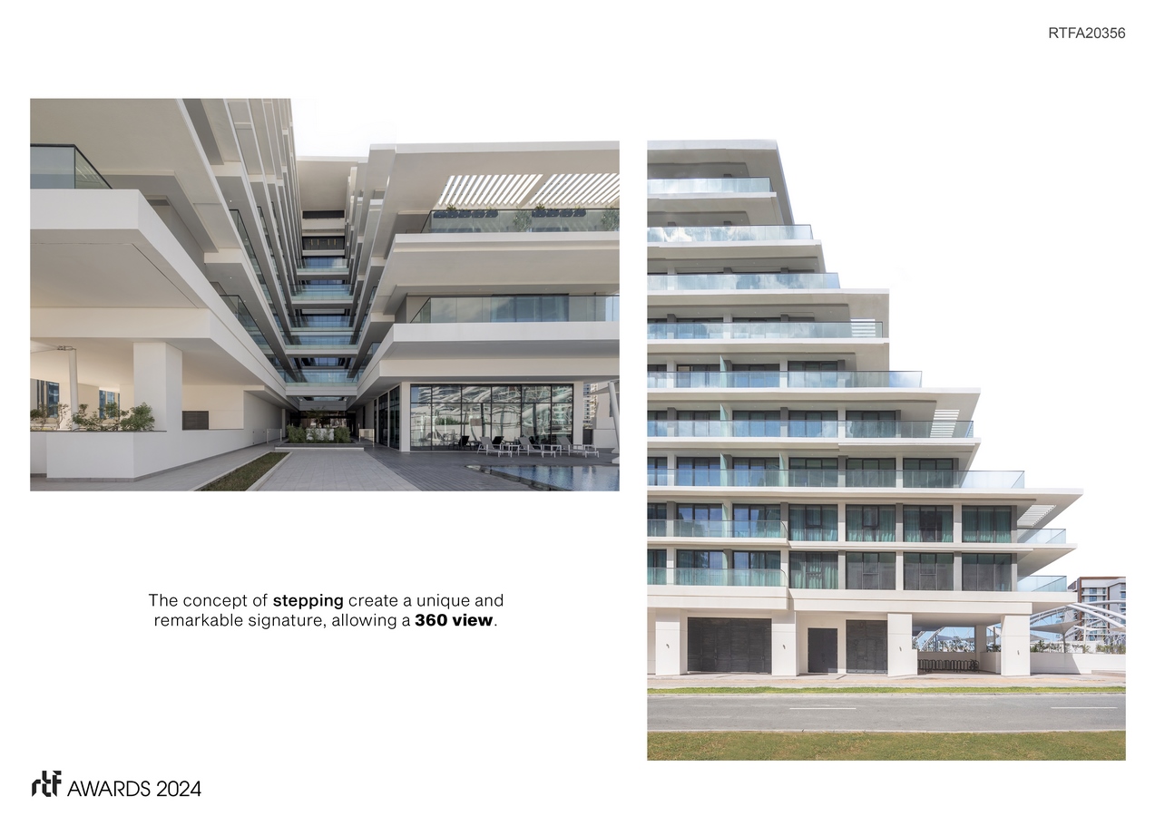 The design concept for Al Beed Terrace revolves around the idea of stepped architecture, creating a unique and remarkable signature within the development. This approach not only enhances the visual appeal of the building but also maximizes panoramic views of the surrounding landscape. Inspired by the natural contours of the land, the stepped design seamlessly integrates with the environment, blending modernity with elegance.