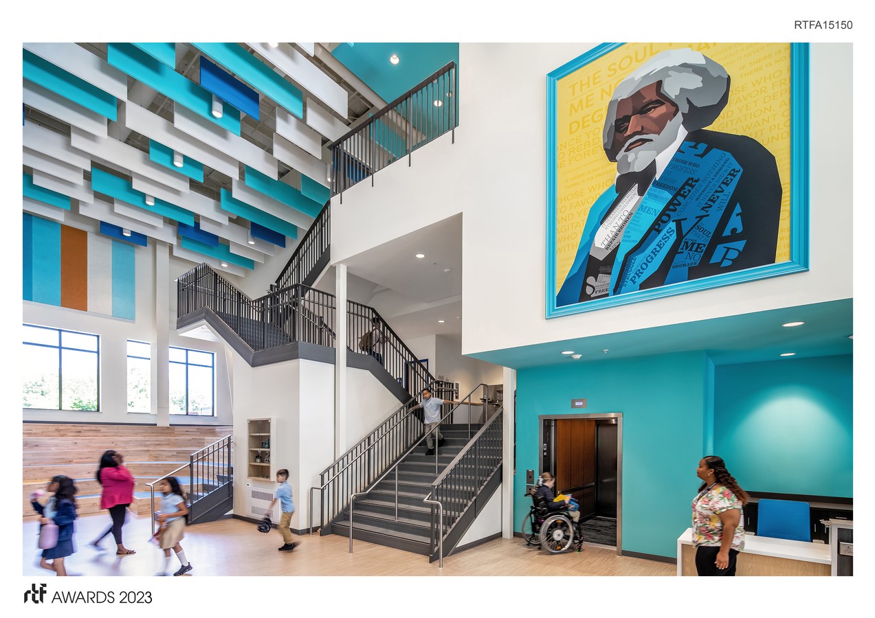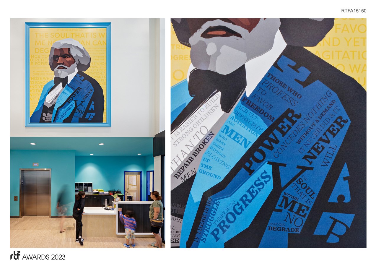 The result is a series of environmental graphics that showcase the school’s rich culture and diverse population, fostering a sense of belonging and pride among all students. Through its commitment to inclusivity and student success, the Alma del Mar Frederick Douglass Campus sets its students on a path towards fulfilling their potential and making a positive impact on the world.