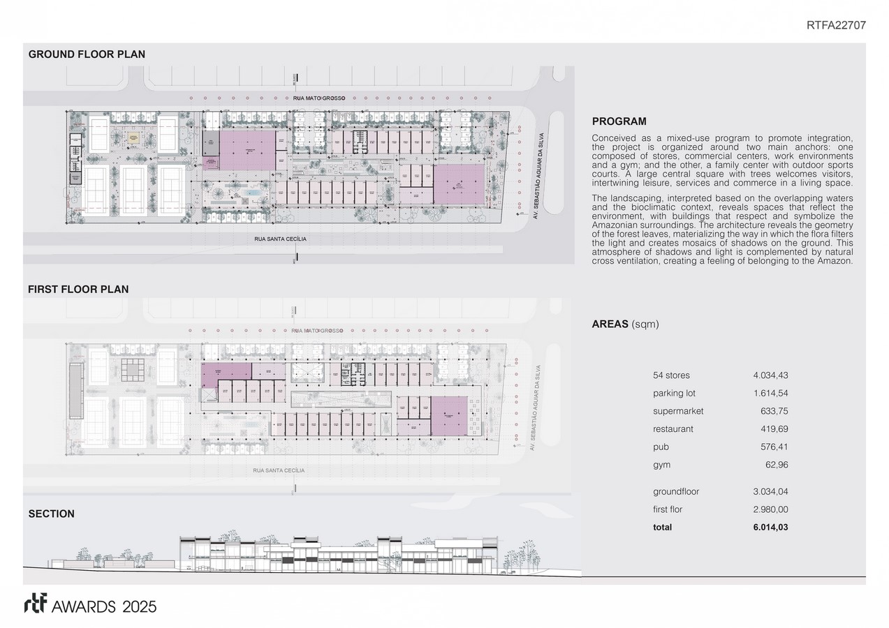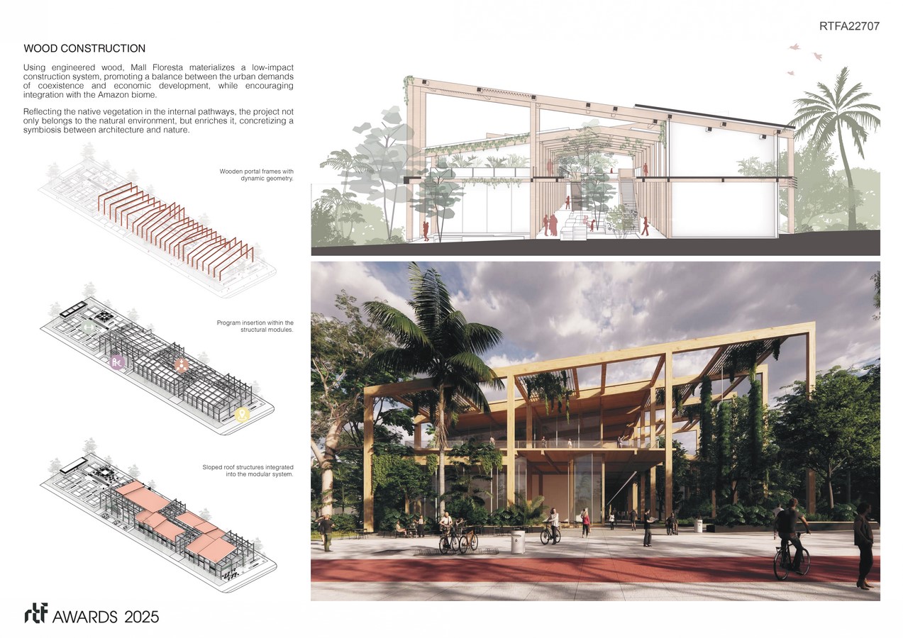 Using engineered wood, Floresta Mall materializes a low-impact construction system, promoting a balance between the urban demands of coexistence and economic development, while encouraging integration with the Amazon biome. Reflecting the native vegetation in the internal pathways, the project not only belongs to the natural environment, but enriches it, concretizing a symbiosis between architecture and nature.