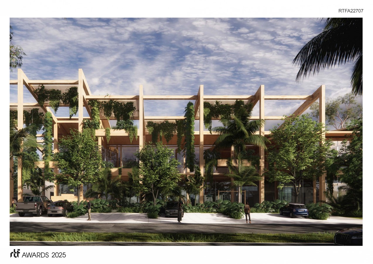 As a way of anchoring a new frontier of urban development in Alta Floresta, the project seeks to exercise bioclimatic architecture, with the use of engineered wood and the recovery of native vegetation, establishing a microclimate inside the building. It represents an architecture designed for minimum impact, with the possibility of disappearing and returning to its primary natural state in the event of the disappearance of its human occupants.