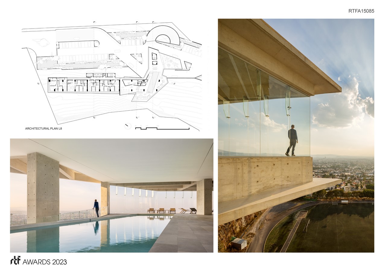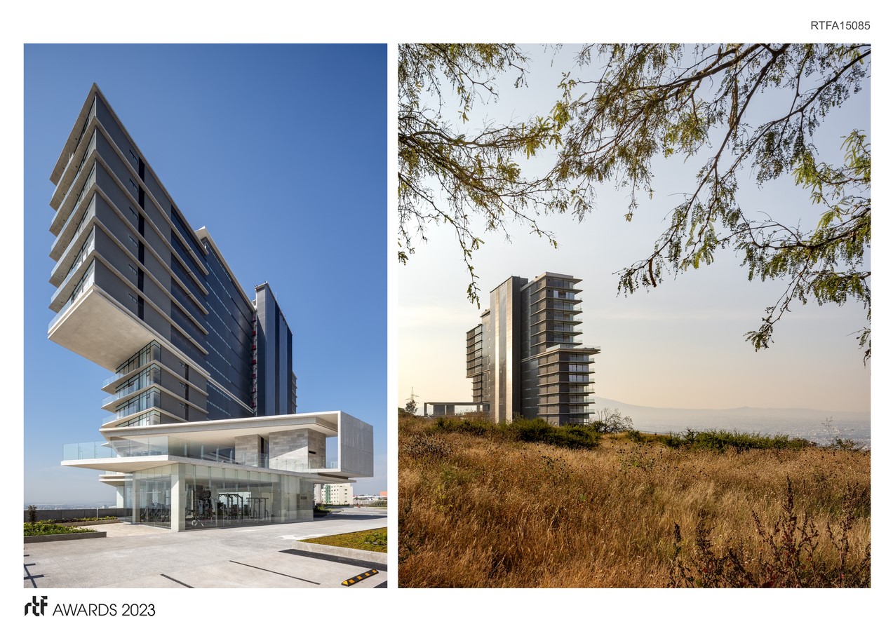 AMIRÁ is located on top of a hill, above the city of Querétaro, which endows the building with privileged views of its surroundings. This visual relationship was fundamental in our design process to achieve reciprocity between the architecture and the city.
