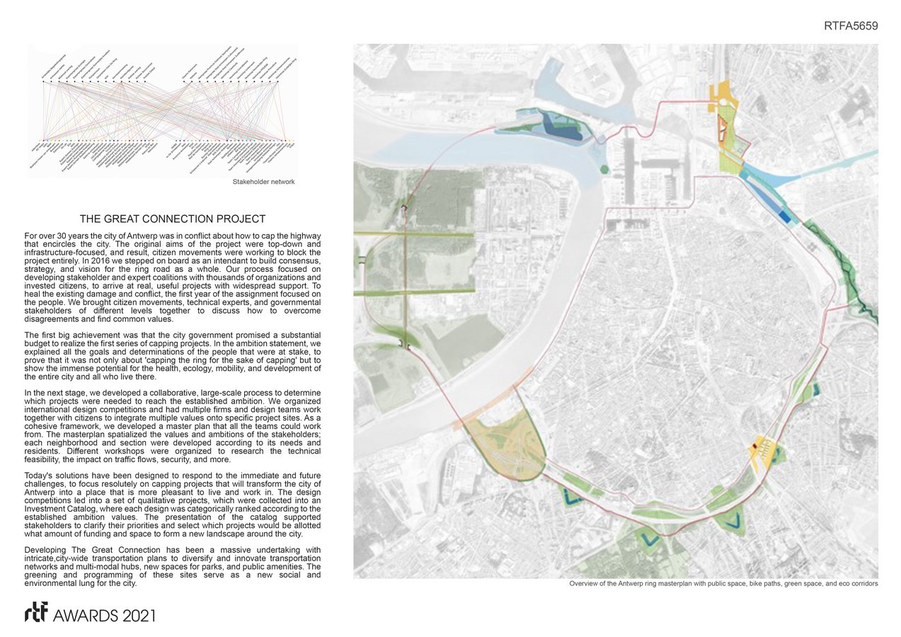 In this project, ORG serves as Intendant for a city-wide effort in Antwerp to bury the existing highway and transform the city. The capping offers a chance to reorganize the existing highway area around Antwerp and to redesign special relationships between conflicting programs to optimize cohesion and functionality. The new public space, as a result of developing an underground highway system, offers breathing space to the residential areas, new developments for multimodal transportation. New green zones on the cap also provide crucial missing links in the ecological systems and structures around Antwerp.