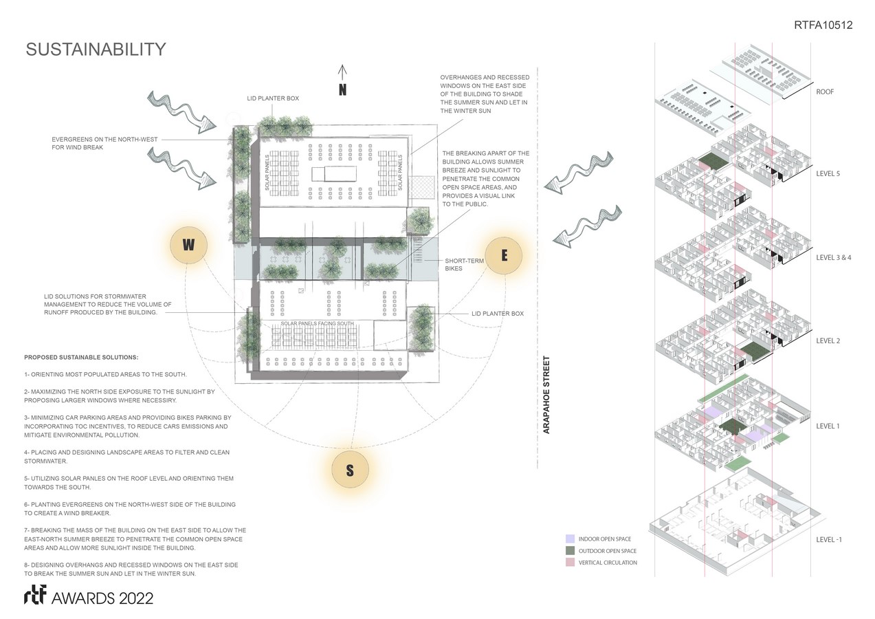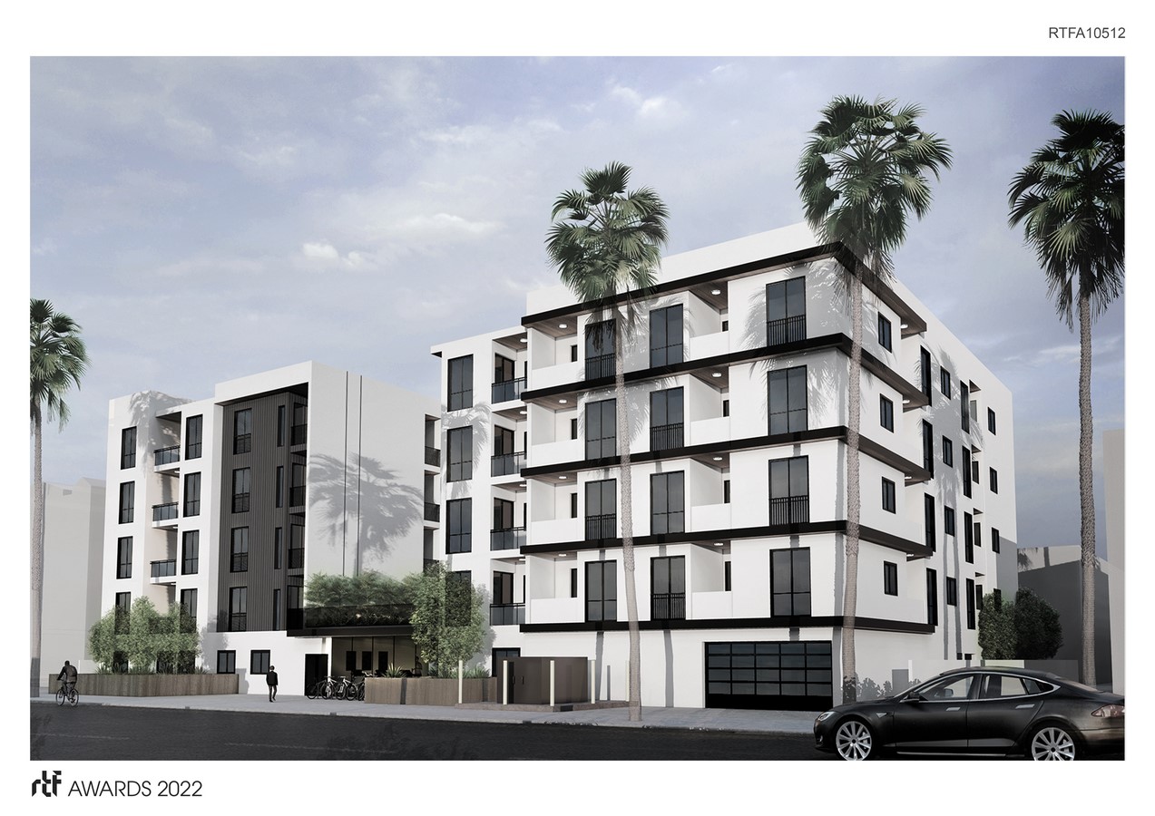 Within the neighborhood of Koreatown in Los Angeles, Arapahoe Apartments intend to support one of the most densely populated areas in the United States, with high poverty rates. One of the main design goals for the proposed affordable housing project is to generate positive spillover effects by creating a high-quality product dedicated to the comfort of inhabitants.