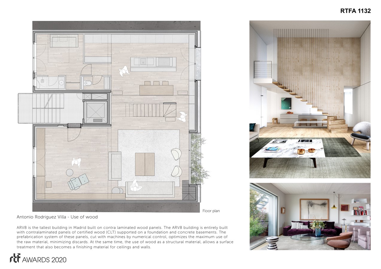 The ARV8 building is a 7 story building, entirely built with contra laminated panels of certified wood supported on a foundation and concrete basement. This promotion features elements in its design such as open, versatile spaces blending the boundary between the interior and the exterior, giving a sense of continuous space.