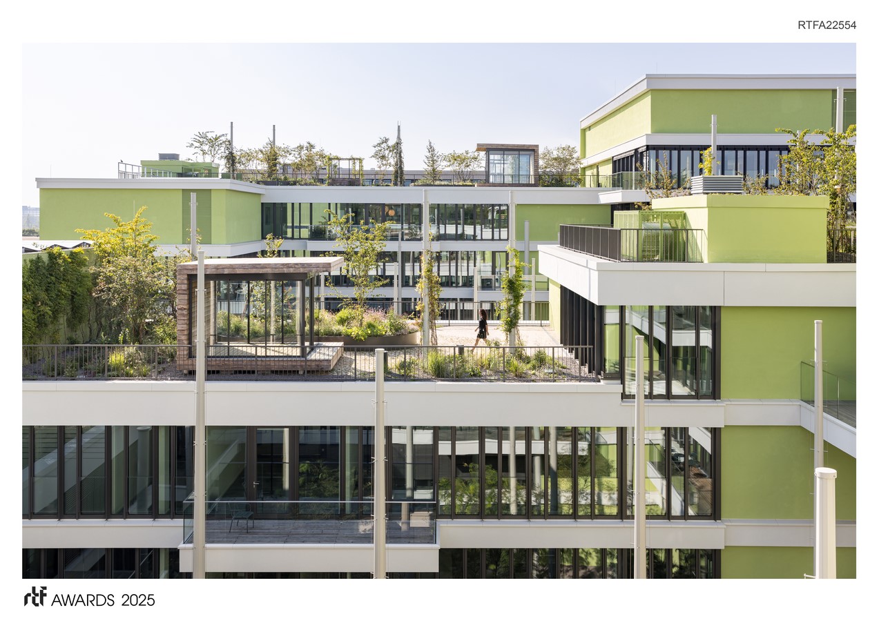 In this way, this building can make a contribution to sustainable architecture. The result is a green working oasis in an urban context.