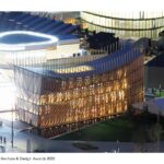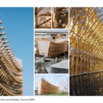 The Bahrain Pavilion at Expo 2025 Osaka is a testament to sustainability, cultural exchange, and craftsmanship. Inspired by Bahraini maritime heritage and Japanese carpentry, its open, dhow-like form evokes the vessels that once navigated Eastern Arabia and East Africa, symbolizing travel and interconnectedness. Constructed from around 3,000 pieces of unengineered wood using intricate joinery, it minimizes waste, requires no additional materials, and rests on minimal foundations to avoid concrete bedding, ensuring nearly all materials are reusable.
