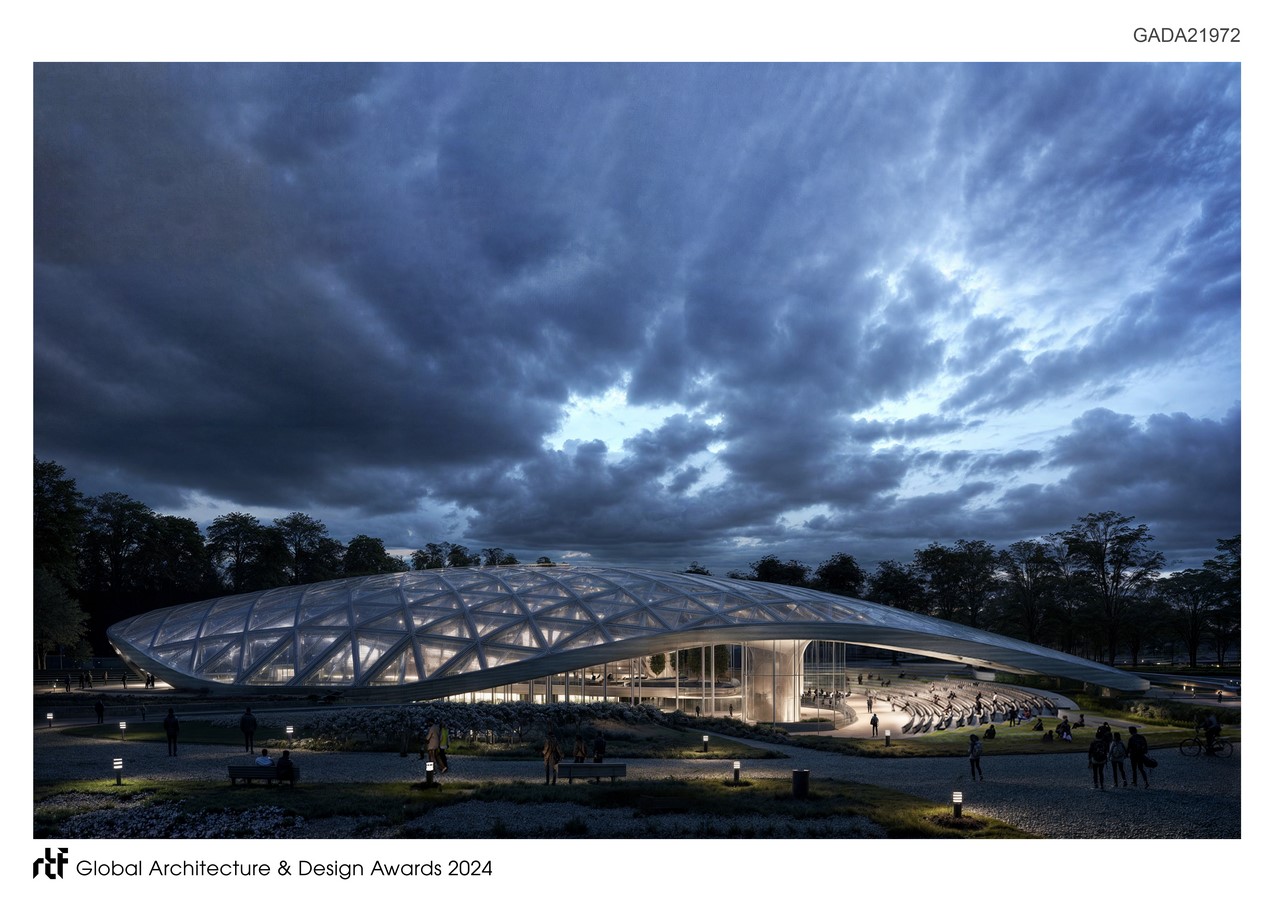 In the design discovery phase, our team developed structural concepts utilizing wood—a rapidly renewable material—to create an intricate, weaving dome. This free-span structure was designed to accommodate a 500-seat indoor concert hall, a 600-seat outdoor amphitheater, community spaces, and an art museum. The building’s form drew inspiration from the organic shapes prevalent in Salish art, aiming to embody a natural and harmonious essence that integrates seamlessly with the local flora. Its sculptural quality also evokes the form of carved canoes.