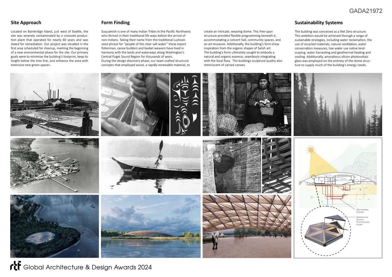 In summary, the building stands as a model of environmental stewardship, integrating innovative sustainable practices to reduce energy consumption and minimize carbon emissions. It sets a benchmark for eco-friendly architectural design, reflecting a deep respect for both the natural environment and the cultural heritage of the Suquamish Tribe.