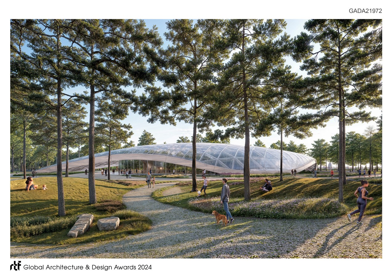 Scheduled for remediation, our project is positioned in the initial cleanup area, heralding a new era of environmental restoration for the site. Our primary objectives were to minimize the building’s footprint, ensure its height remained below the tree line, and enrich the surroundings with extensive new green spaces.