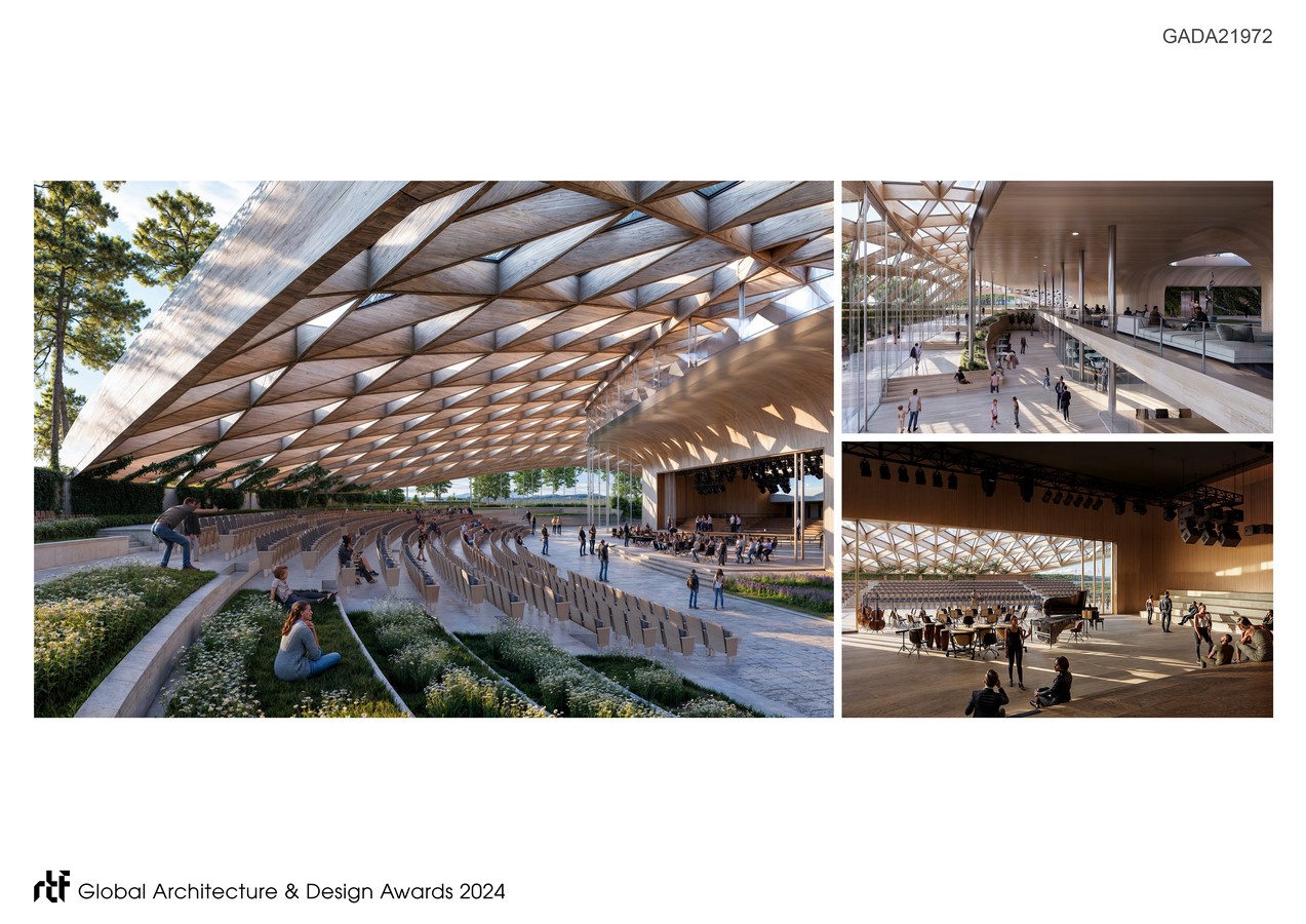 Central to the design is the pursuit of clarity and contrast, informed by local vernacular architecture and the Suquamish Tribe’s wood sculpting heritage. Wood serves as the primary structural and interior finish material, marrying tradition with sustainability. The outdoor amphitheater design extends seamlessly into the adjacent park, promoting community engagement by allowing visitors to enjoy performances while relaxing in the green space.