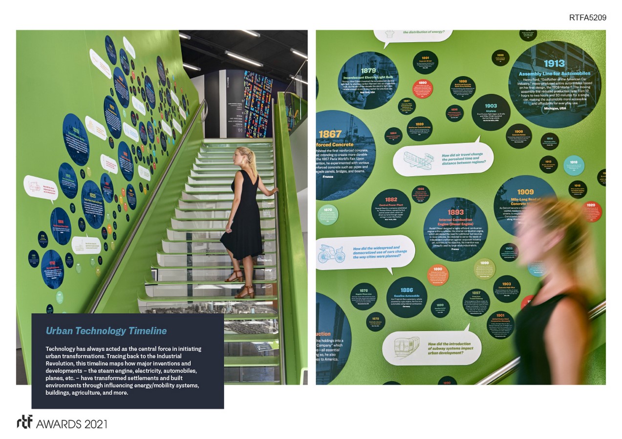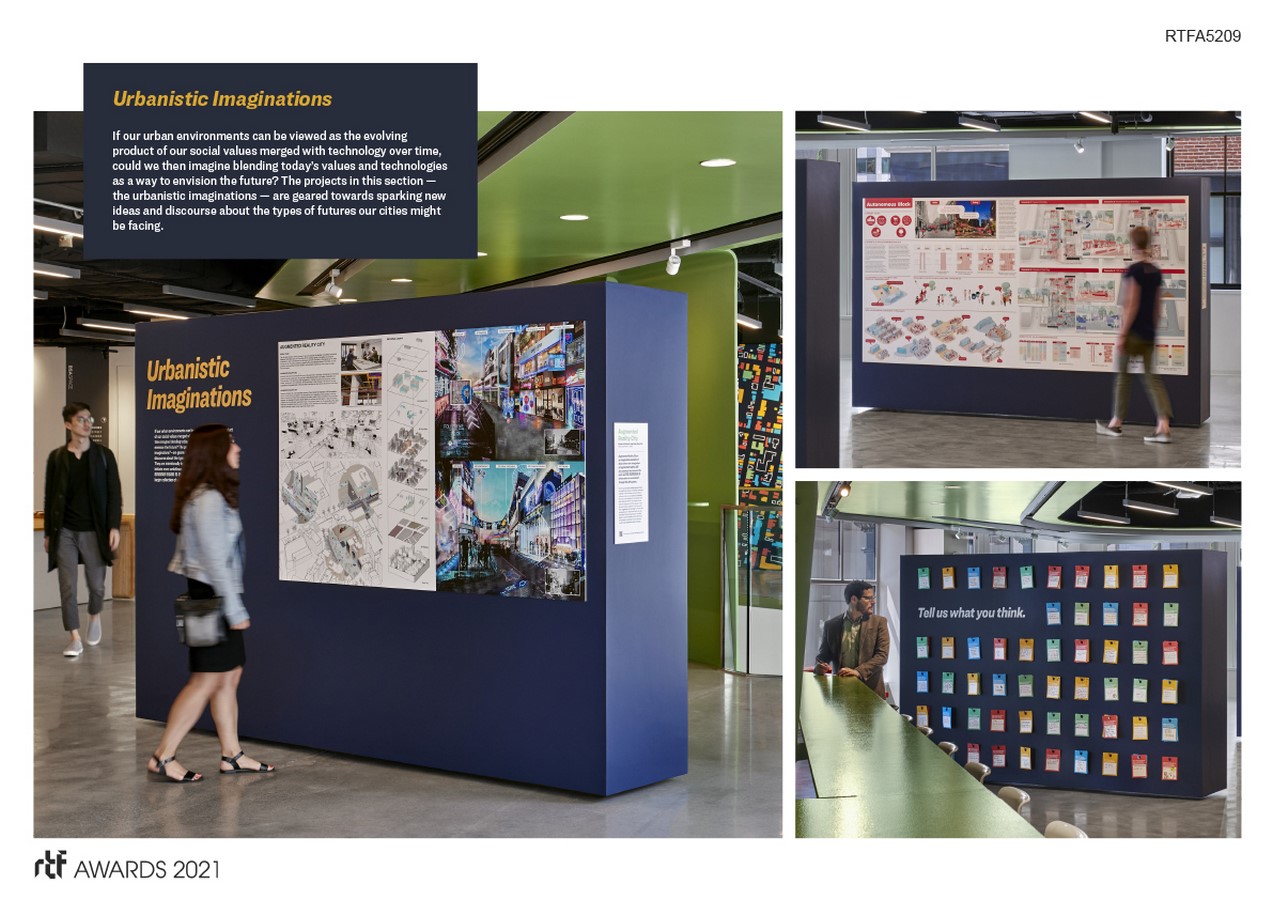 Examining the current conditions of our urban environments by reflecting on past technological innovations, the interactive exhibit provides a futuristic—and potentially prophetic— glimpse into the role emerging technologies may play in the development of global cities and our collective future