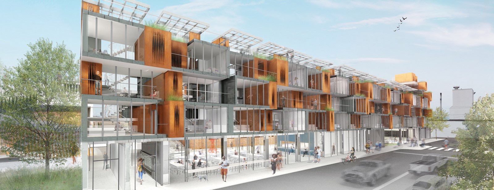 The project will be sustainably run on a combined renewable energy network of solar rooftop canopies for electricity and a hydronic geothermal loop system – utilizing existing piping and resultant heat from the adjacent seaweed processing and sewage treatment plants – for heating and cooling.