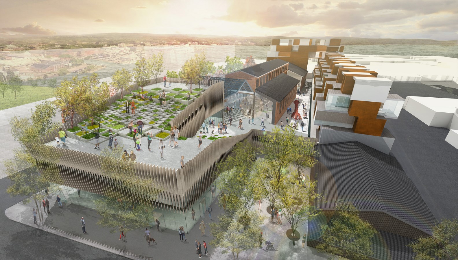 The Beggar’s Wharf Arts Complex is the heart of the redevelopment design vision. The Arts Complex is a collective of institutional spaces and ancillary mixed-use spaces including public parks, exhibition and event spaces, maker space studio and educational workshop facilities, artist-in-residence work / live studios, townhouses with flex studio apartments, commercial, as well as, in the larger development, marina, hotel, conference and co-work spaces.