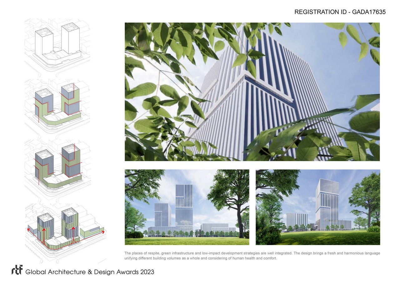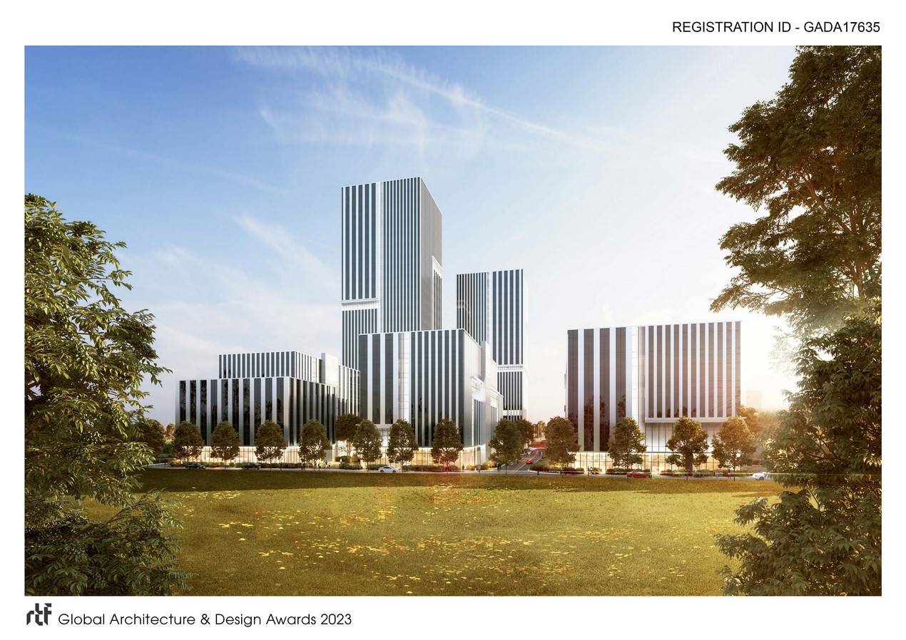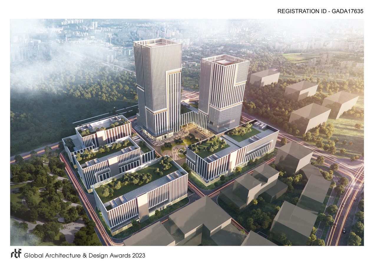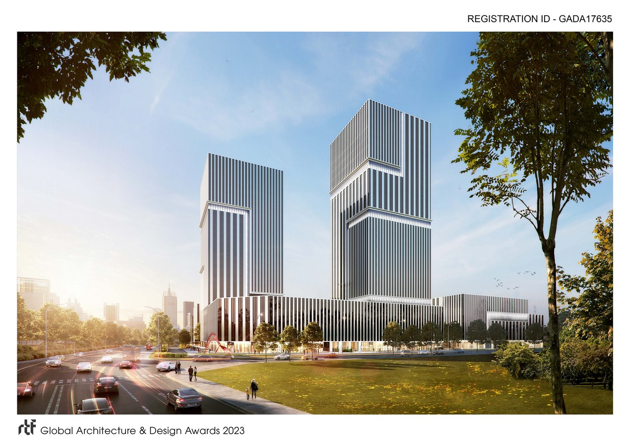 The project is located in Wuhan East Lake New Technology Development Zone, which also known as the “Optical Valley of China”. The master plan consists of two towers connected with a commercial podium and four modern new plant buildings. Two towers are functional buildings for office, research and development center, and high-rise apartments.