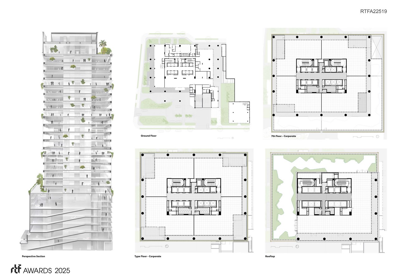 Corporate floor up to 2.6 thousand m². Biophilic design, cross ventilation, environmental comfort, and reversible terrace. Spaces that connect corporative models for a new world: a mirror for the future of work. Inclusive, modern, sustainable. The perfect balance between city, urbanism and users.