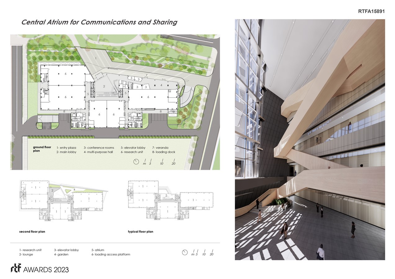 Programmatically the project provides a creative research platform for the biotechnology industry, while incorporating sustainable green energy, technological imagery and humanistic concepts, to elevate organic architecture to a new level of holistic consciousness.