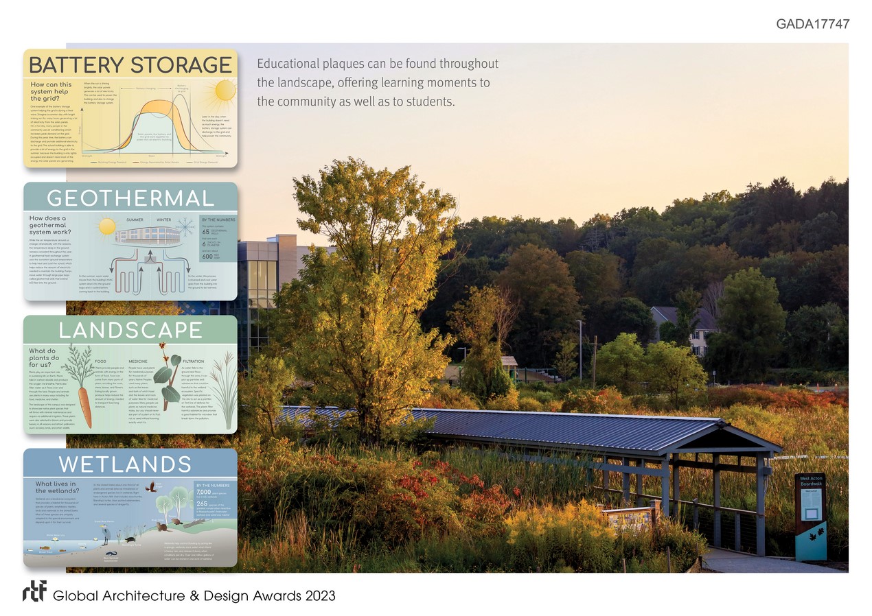 The district’s focus on sustainability and their goal to use the building as a teaching tool made educational signage a significant component. Multiple installations around the campus depict the project’s many earth-conscious features. All graphics are infused with educational purpose thanks to constant collaboration with the schools’ teachers.