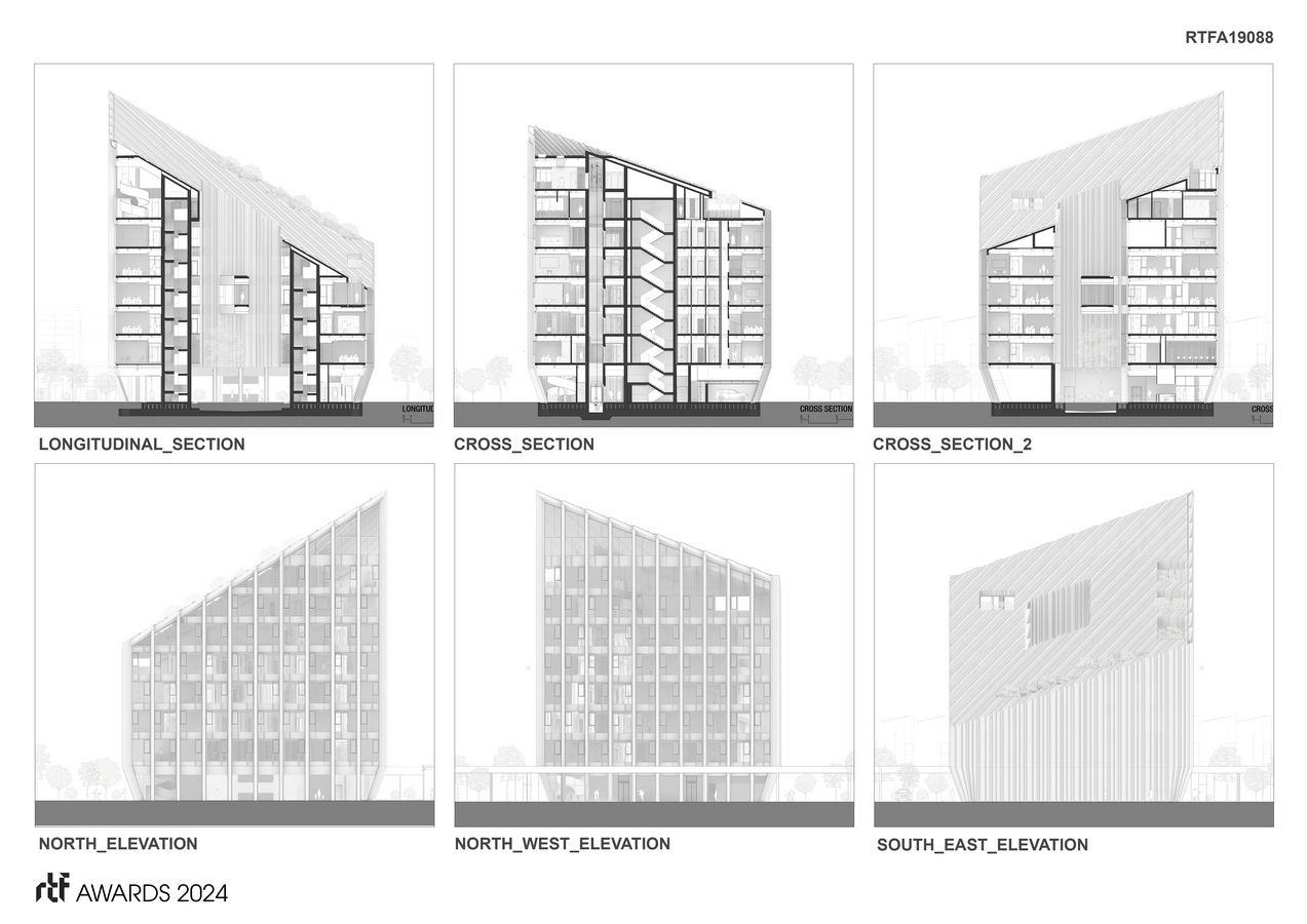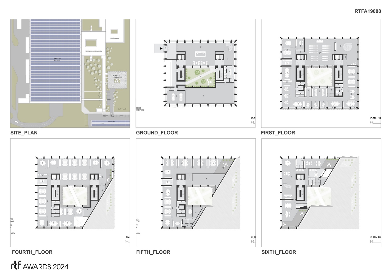 Designed with future flexibility in mind, the building features pillarless spaces and a smart external steel skeleton that characterizes its industrial aesthetic. Inside, the building is a testament to modern workplace design, fostering connectivity and collaboration. The layout is thoughtfully orchestrated, with departments distributed across various levels, for optimal public interaction and synergy with surrounding buildings. Central to the building’s interior is a sculptural spiral staircase, crafted from steel. This striking feature is more than a physical connector between floors; it’s a symbolic vortex of creativity and exchange. The staircase invites a continuous flow of ideas, mirroring the dynamic pulse of the building’s inhabitants.