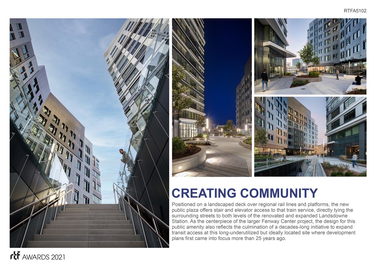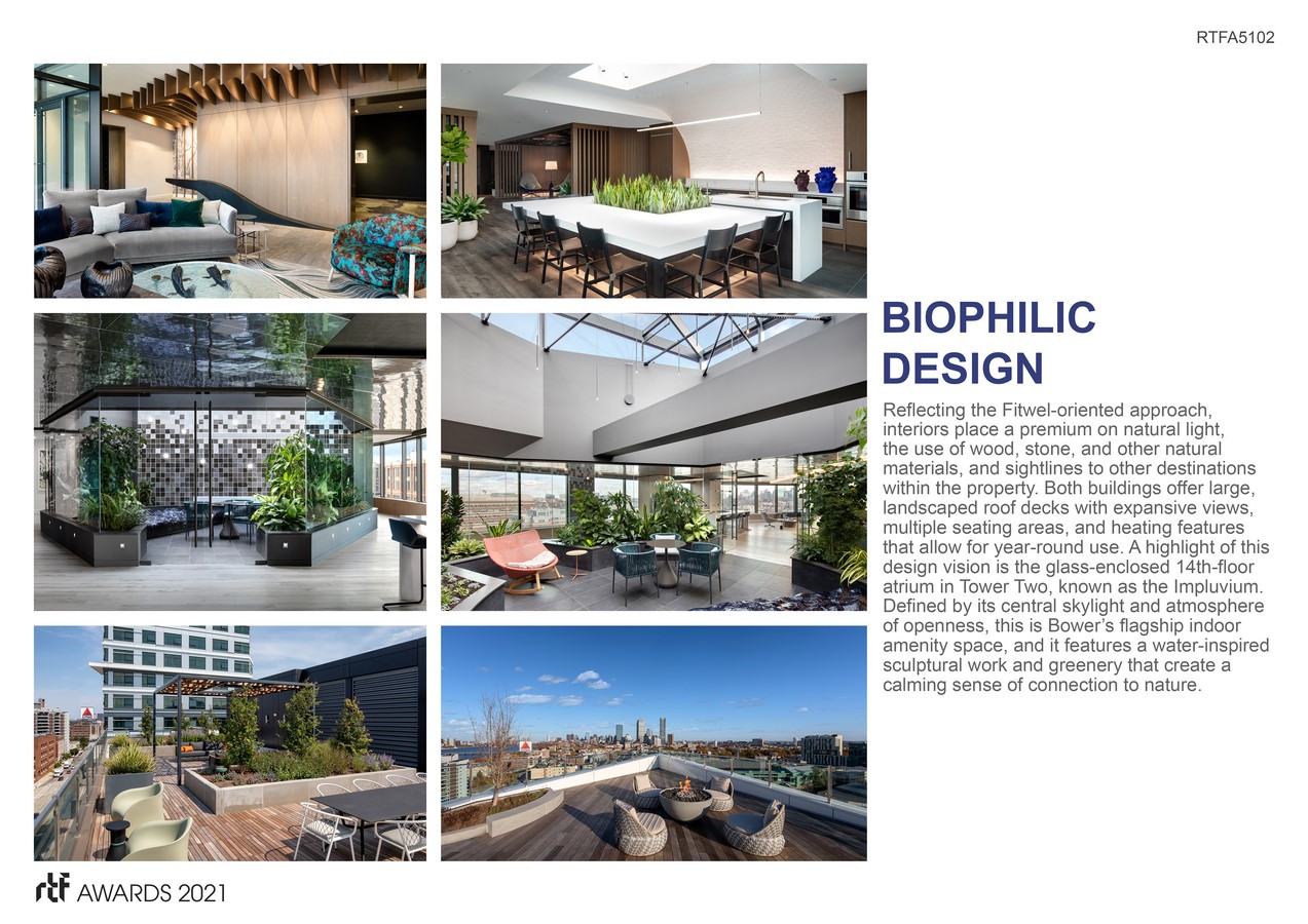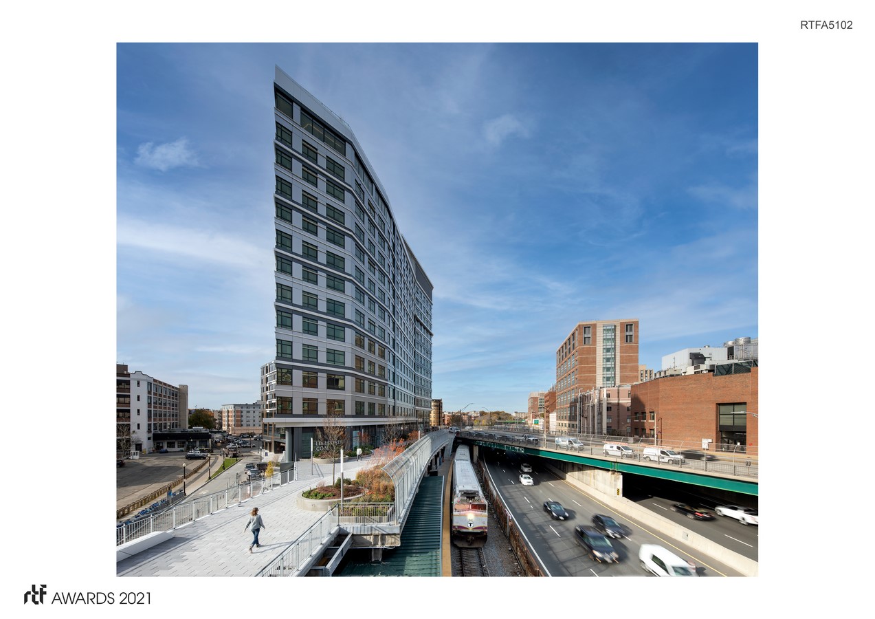 Built on what was previously an underutilized site, Bower helps fill a longstanding gap in Boston’s urban network created by highway construction in the 1960s. Its design employs clever massing of the two structures – which rise in height and scale from historic Beacon Street to the highway – and the creation of the new public plaza whose meandering paths link the buildings and provide, for the first time, a fully accessible pedestrian connection with a 23-foot grade disparity between Beacon Street down to David Ortiz Drive and Fenway Park below.