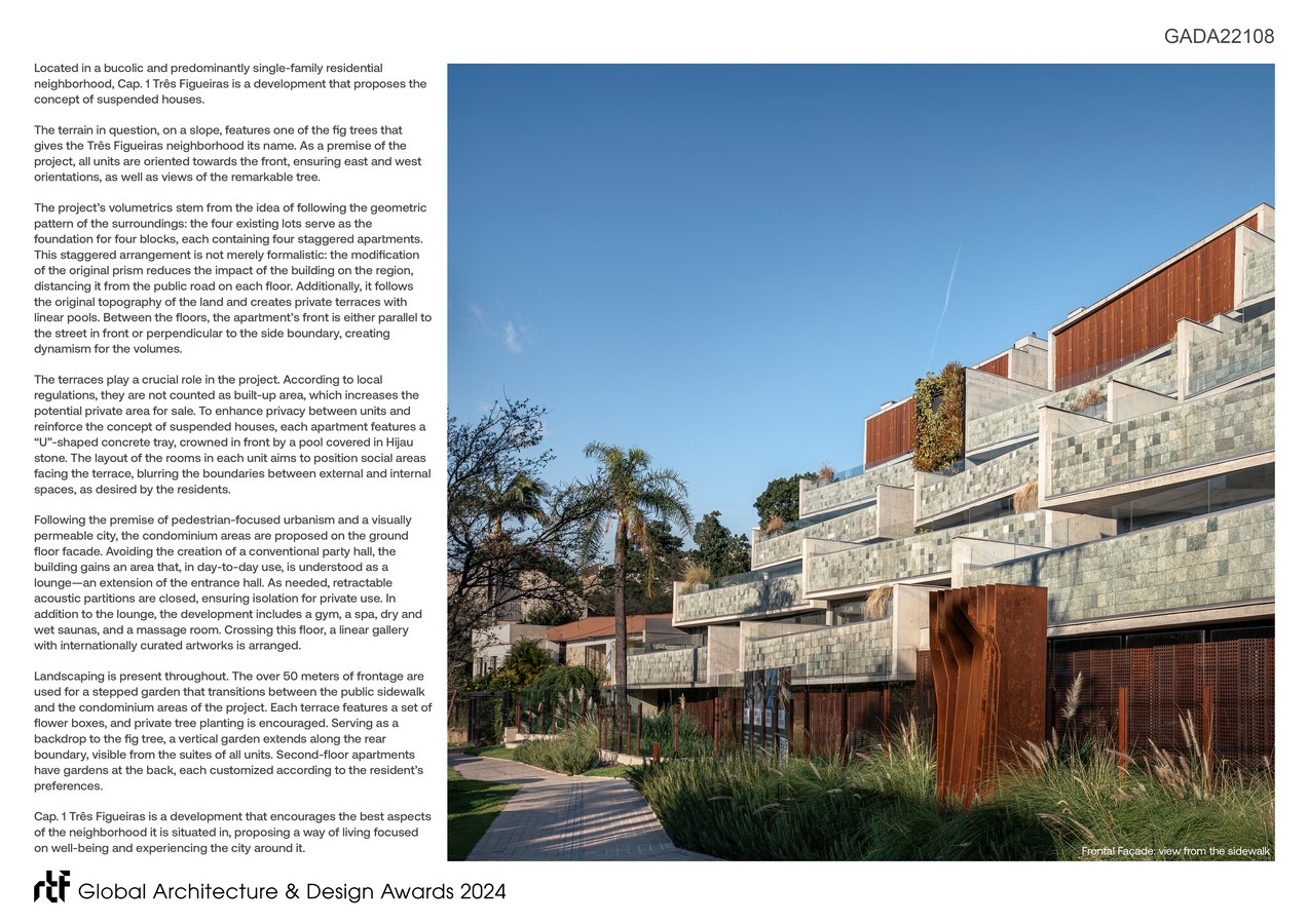 Cap. 1 Três Figueiras is a development that encourages the best aspects of the neighborhood it is situated in, proposing a way of living focused on well-being and experiencing the city around it.