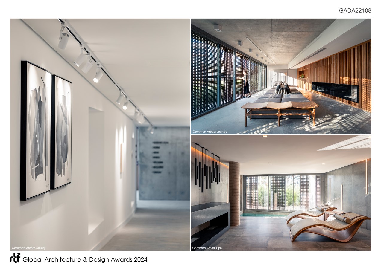 Following the premise of pedestrian-focused urbanism and a visually permeable city, the condominium areas are proposed on the ground floor facade. Avoiding the creation of a conventional party hall, the building gains an area that, in day-to-day use, is understood as a lounge—an extension of the entrance hall. As needed, retractable acoustic partitions are closed, ensuring isolation for private use. In addition to the lounge, the development includes a gym, a spa, dry and wet saunas, and a massage room. Crossing this floor, a linear gallery with internationally curated artworks is arranged.
