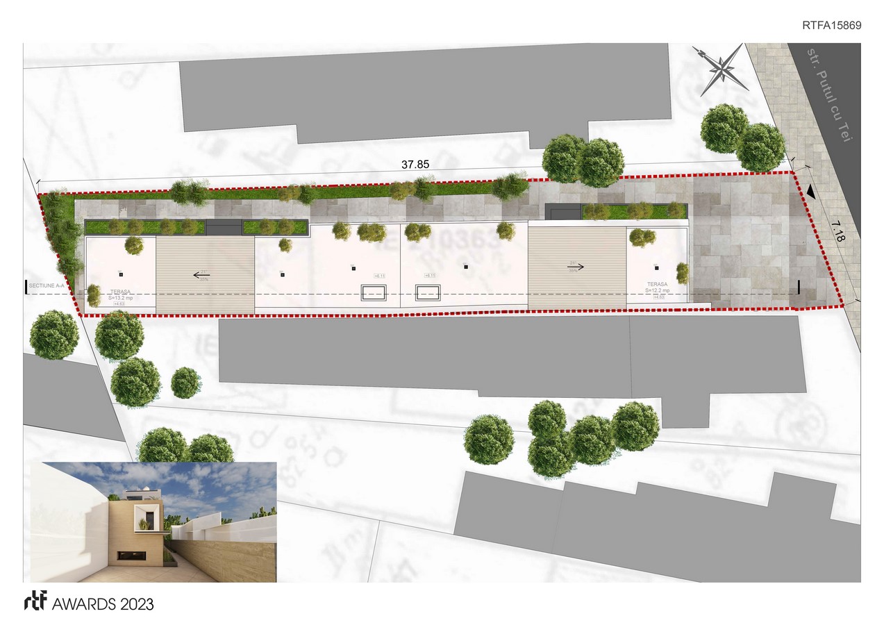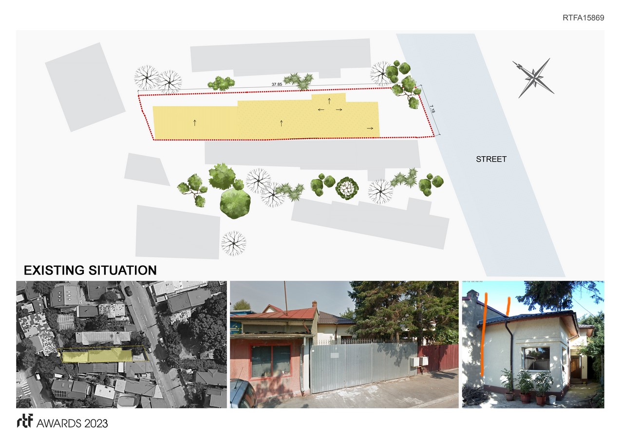 The project is located in Bucharest, Romania, in an area of old, cramped streets, with small houses on narrow plots, where every square meter is valued and contested at the same time.