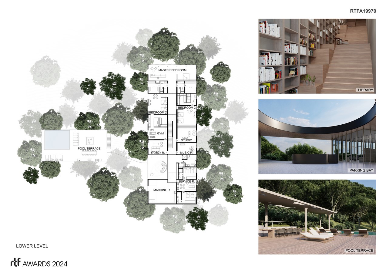 Sustainability acted as the guiding principle for the design philosophy. Beyond passive design strategies, the residence embraces sustainable principles across four main areas: energy consumption, water cycle management, materials selection, and waste management. Meticulous analysis and design yield significant reductions in energy consumption, supported by solar panels harnessing the abundant sunlight. High-efficiency equipment for rainwater harvesting and treated water usage ensures responsible water utilization. Moreover, integrating low-VOC materials underscores a commitment to indoor air quality and occupant well-being. A comprehensive waste management system, categorized into seven classifications, optimizes recycling efforts and minimizes landfill contributions.
