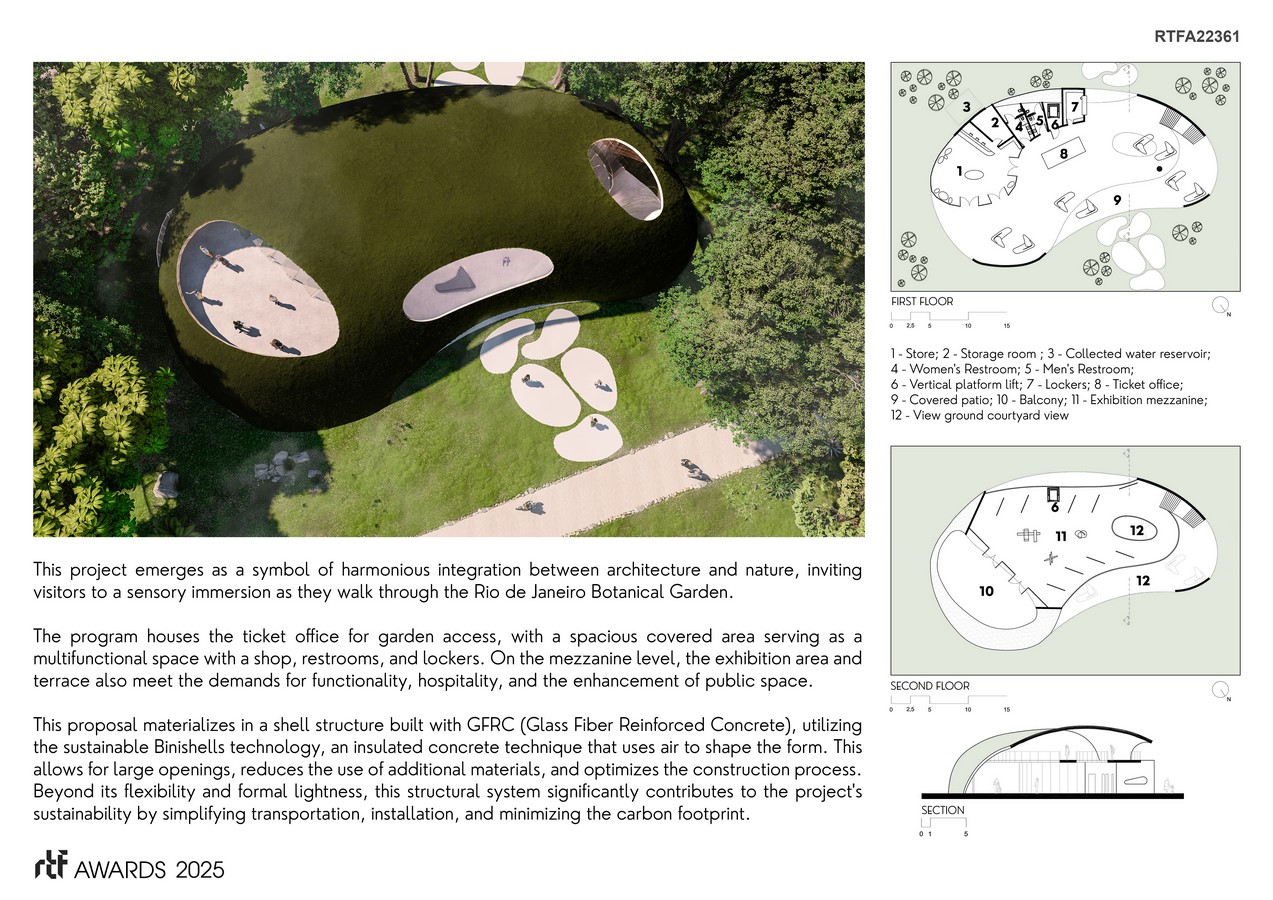 This project emerges as a symbol of harmonious integration between architecture and nature, inviting visitors to a sensory immersion as they walk through the Rio de Janeiro Botanical Garden.