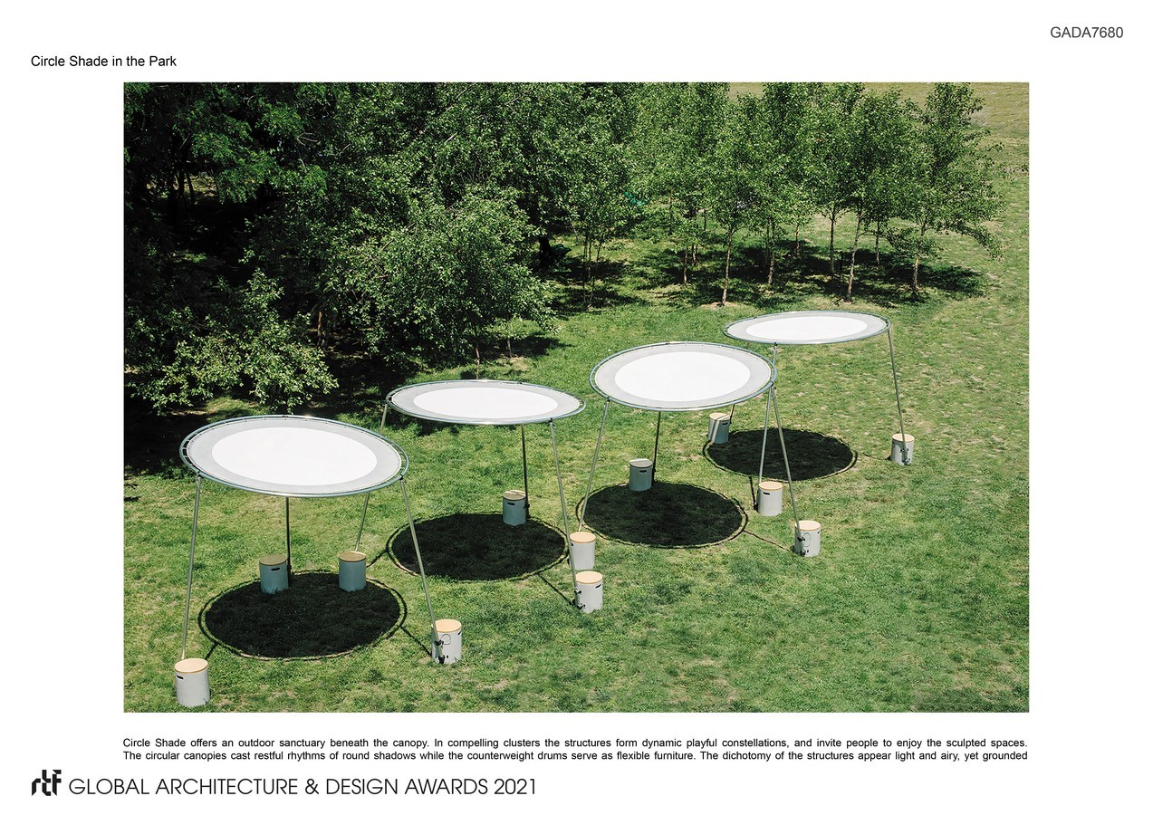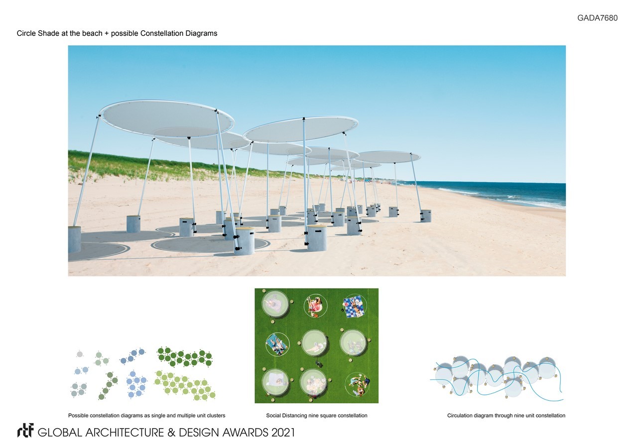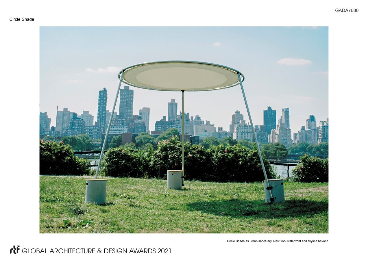 Circle Shade synthesizes renewal of the umbrella shade and mobile tent structures. It eliminates the center pole common for opening and closing parasols and offers a flexible layout and uncluttered alternative to square tents. With the challenges of climate change, and need for protection against the sun’s harmful rays, the canopy system proposes a new type of space for improved outdoor living quality. It’s flexible and integrates with ease offering an outdoor sanctuary with open space, and unobstructed views beneath the canopy.