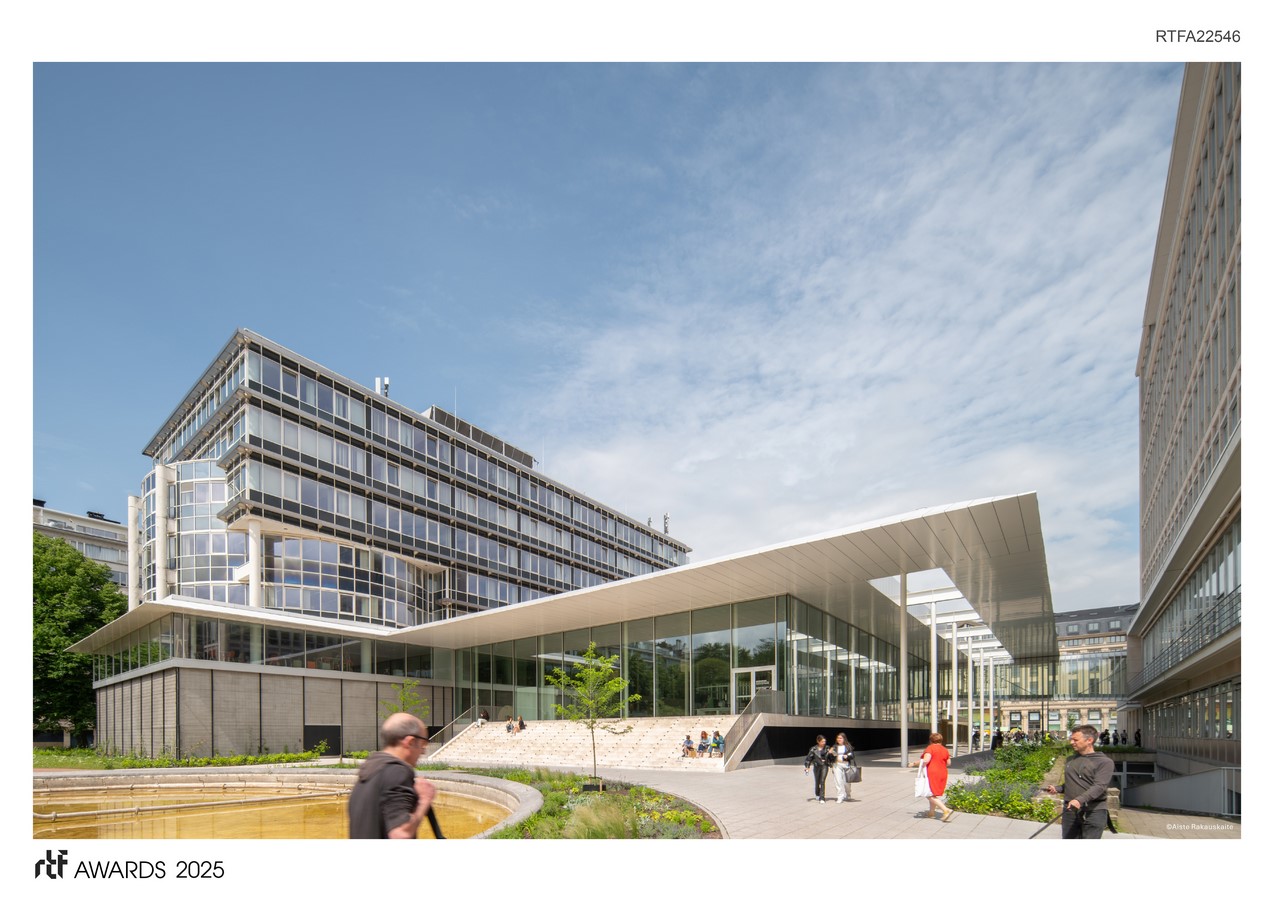Finally, detailed work was done on smart solutions for the agora and connecting the lower levels of the AC building with the existing parking garage and the basement of the EGW building. Efforts were made to limit interventions in the exiting AC building (1990).