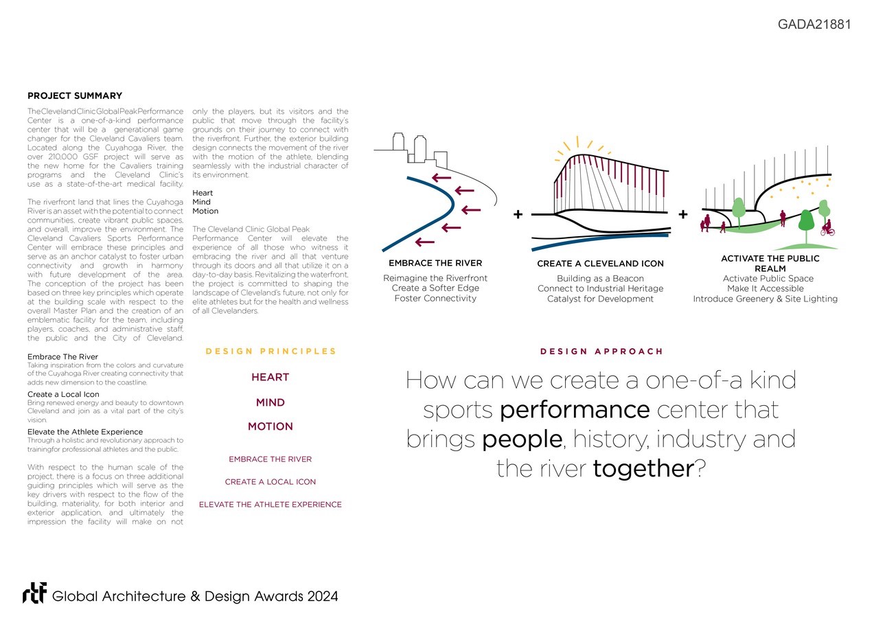 The Cleveland Clinic Global Peak Performance Center will elevate the experience of all those who witness it embracing the river and all that venture through its doors and all that utilize it on a day-to-day basis. Revitalizing the waterfront, the project is committed to shaping the landscape of Cleveland’s future, not only for elite athletes but for the health and wellness of all Clevelanders.