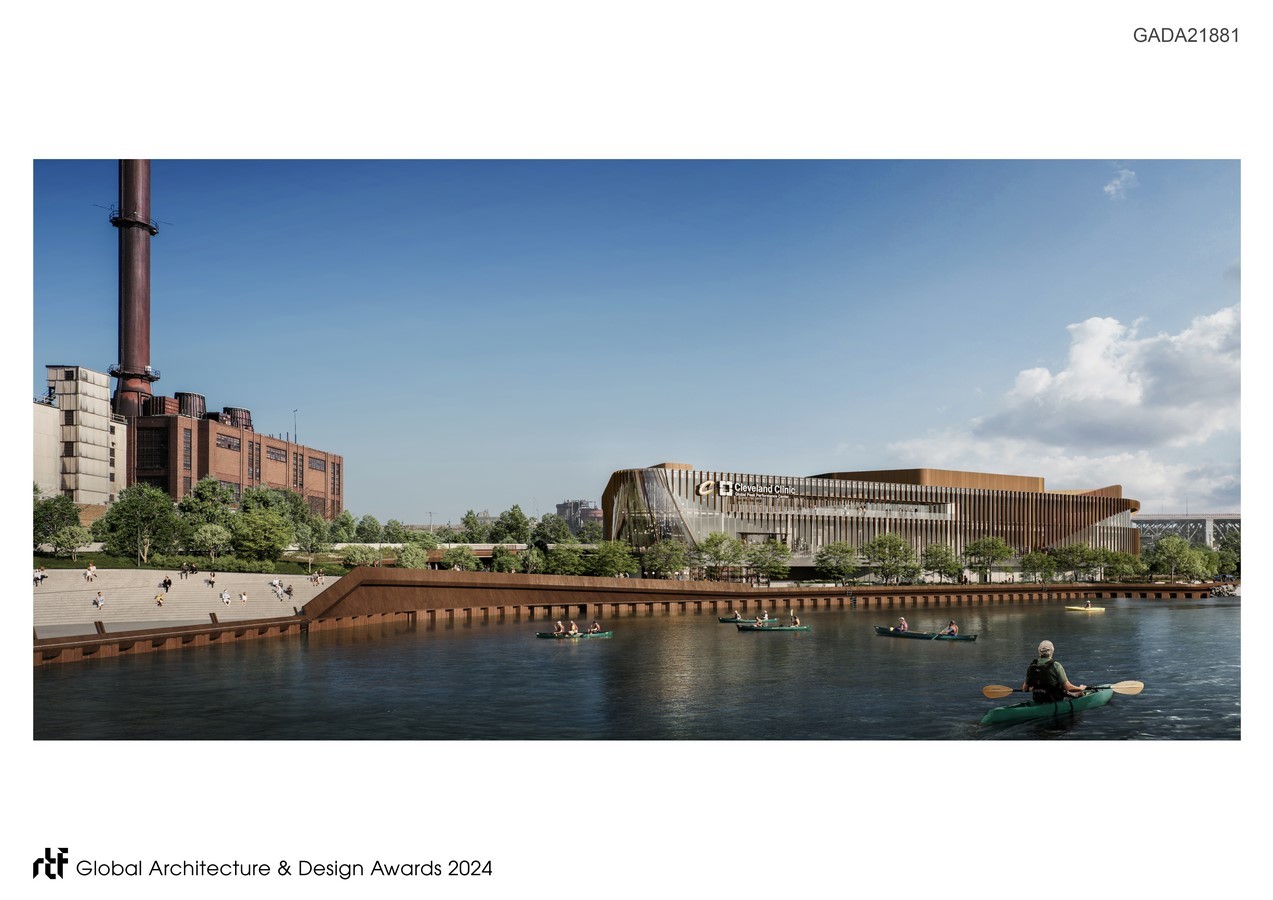 Taking inspiration from the colors and curvature of the Cuyahoga River creating connectivity that adds new dimension to the coastline.