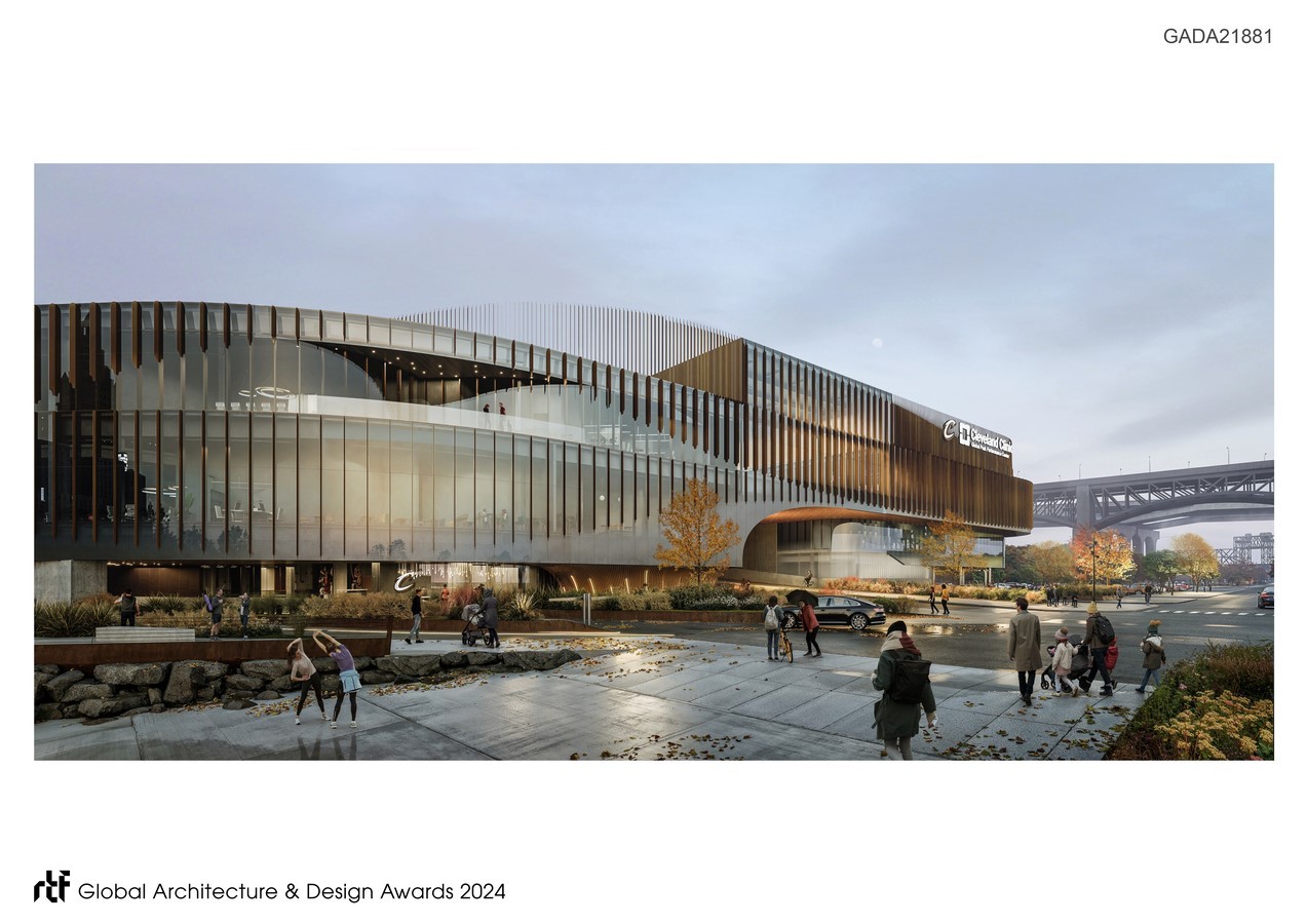 Through a holistic and revolutionary approach to training for professional athletes and the public.With respect to the human scale of the project, there is a focus on three additional guiding principles which will serve as the key drivers with respect to the flow of the building, materiality, for both interior and exterior application, and ultimately the impression the facility will make on not only the players, but its visitors and the public that move through the facility’s grounds on their journey to connect with the riverfront. Further, the exterior building design connects the movement of the river with the motion of the athlete, blending seamlessly with the industrial character of its environment.