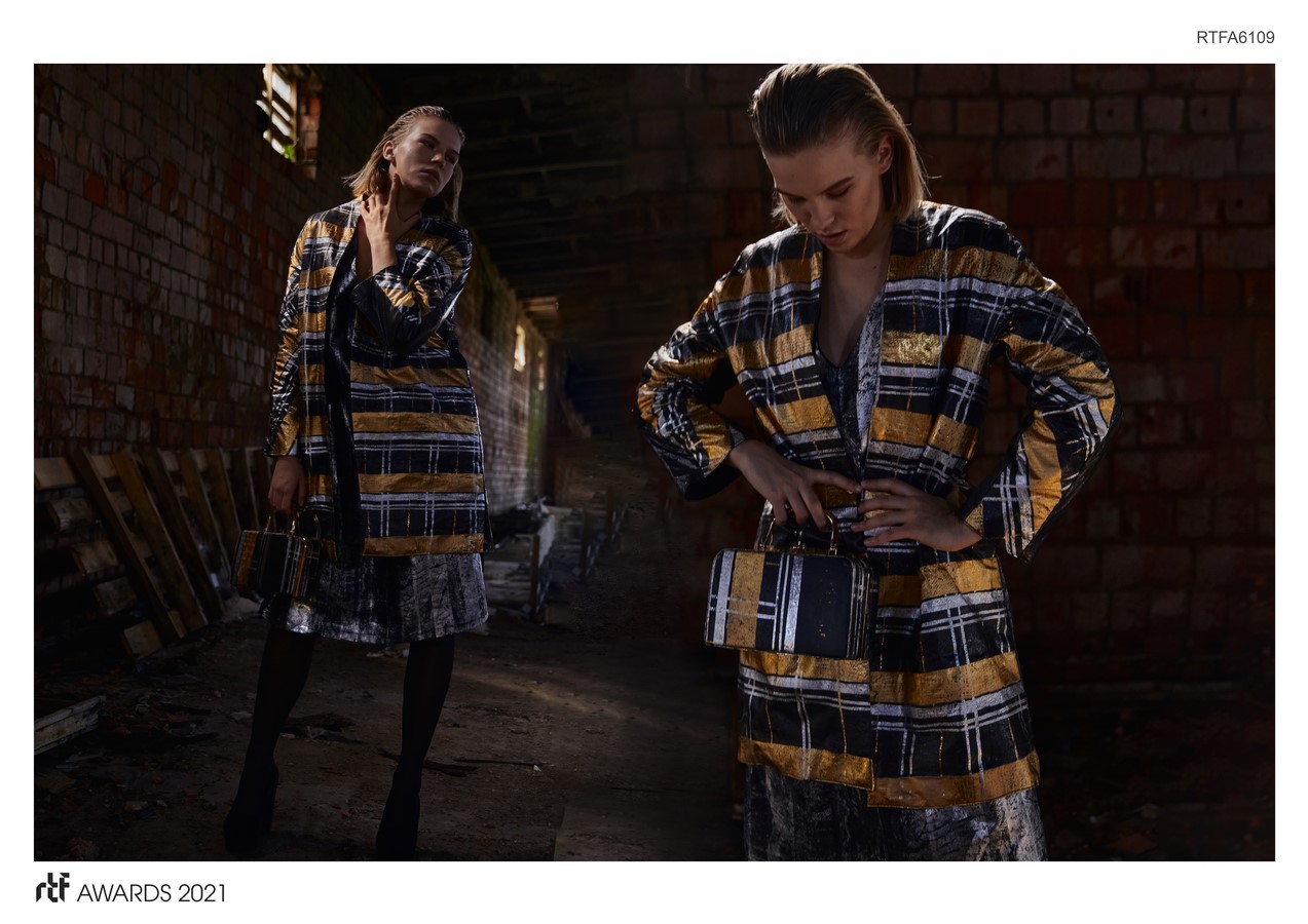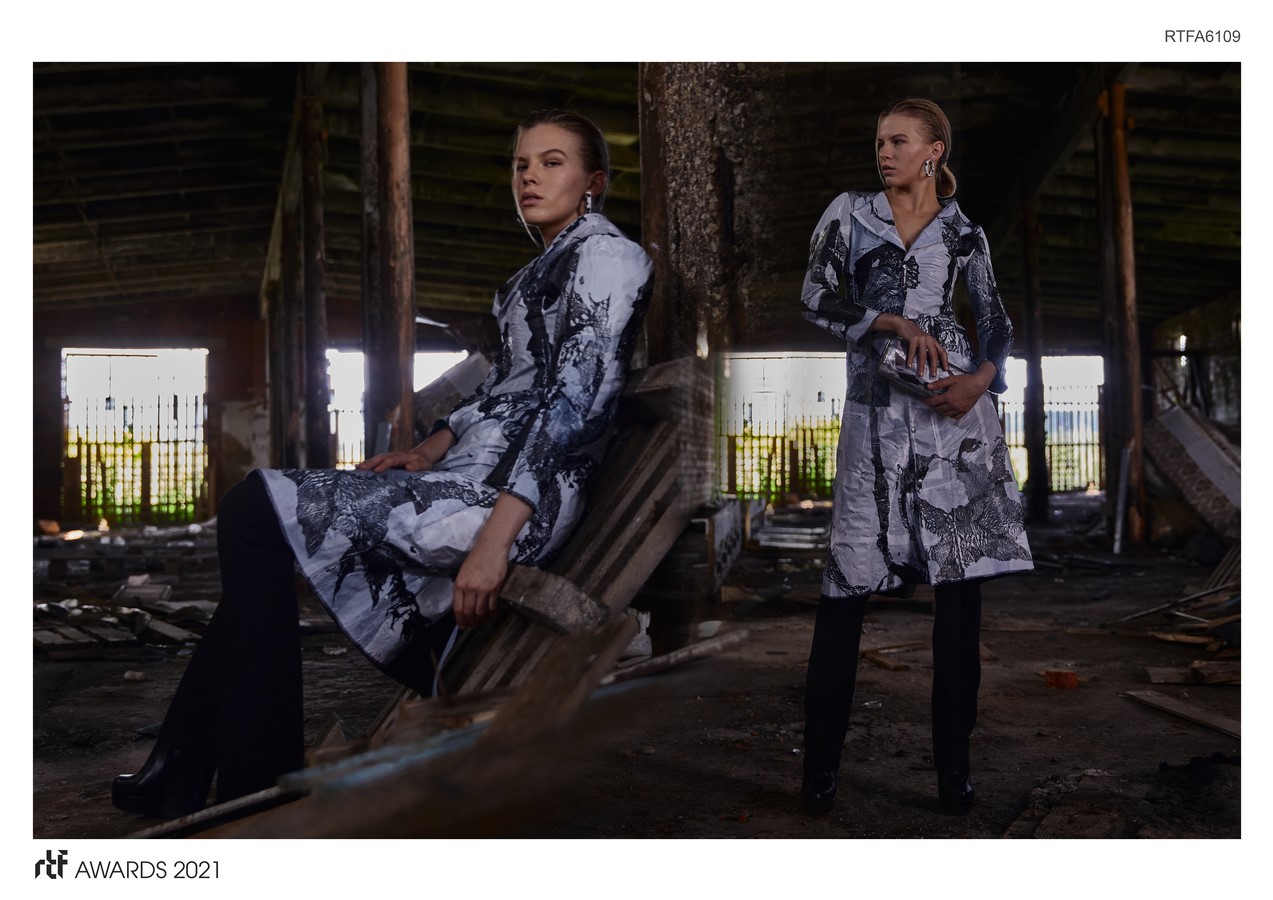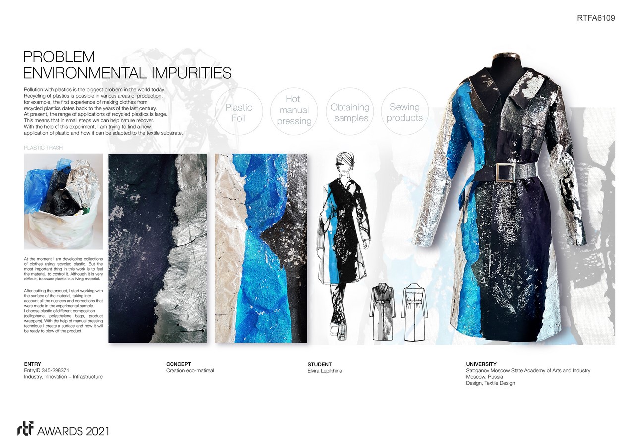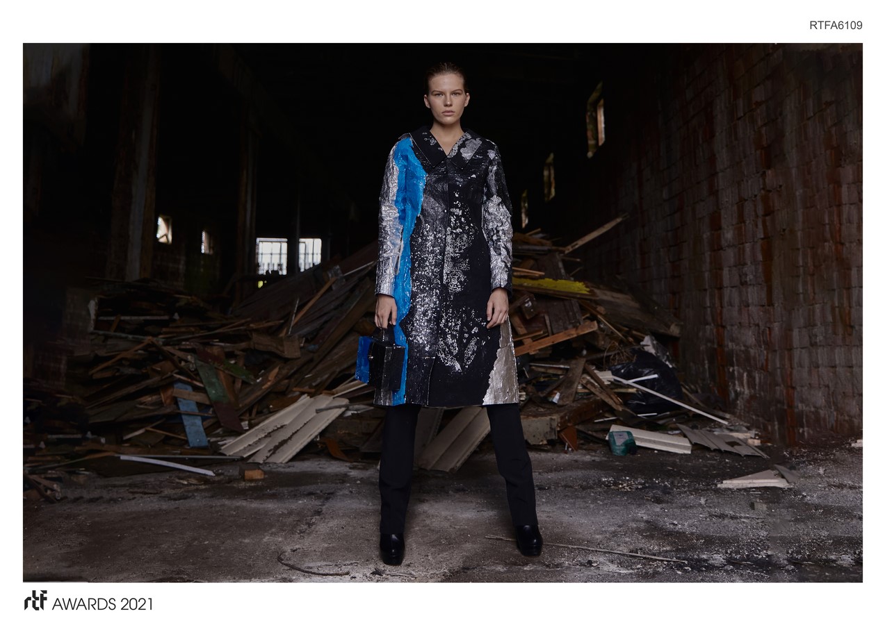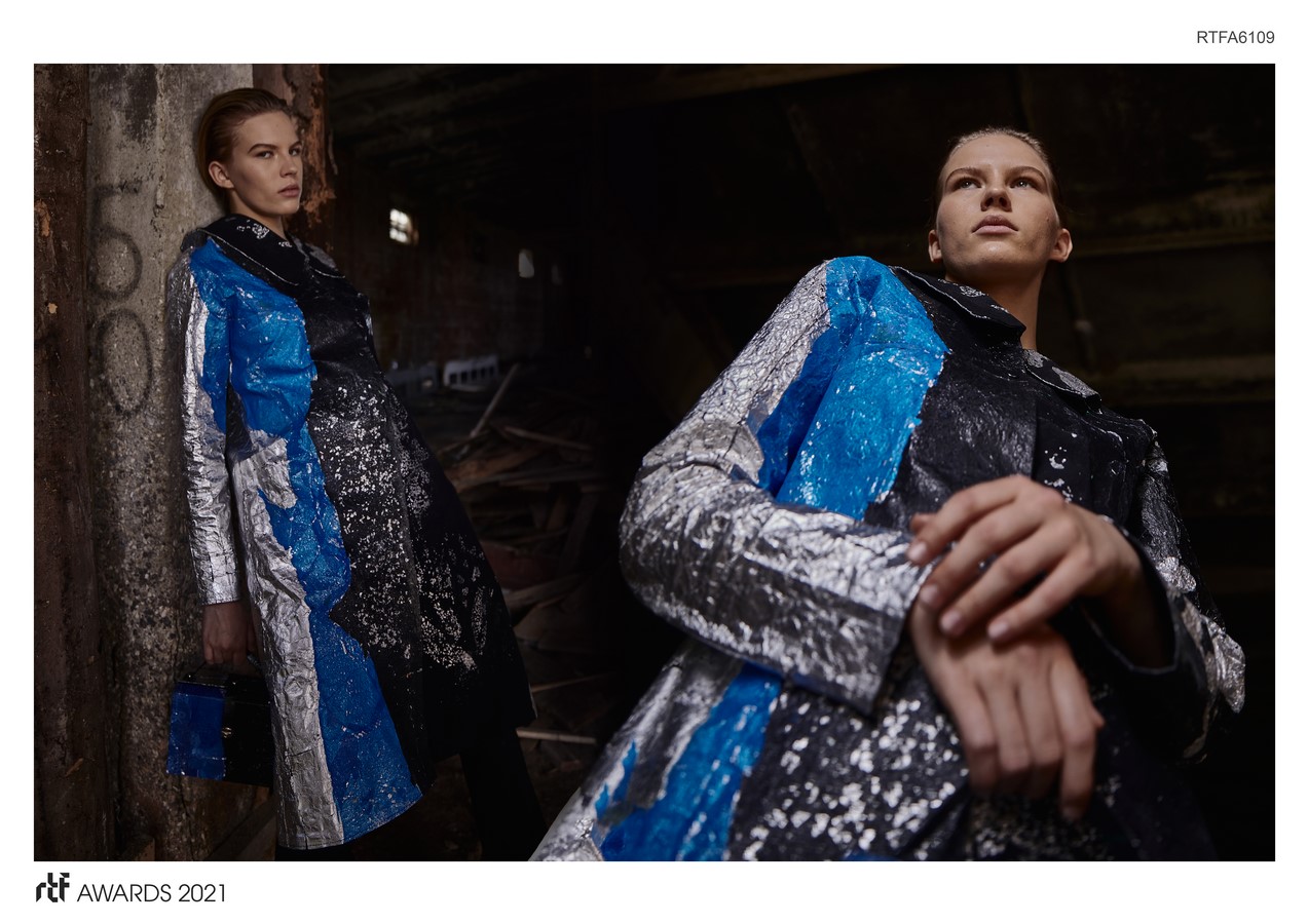 This collection is an experiment in hot pressing. All models of clothing are made in different techniques using such materials as plastic and foil.