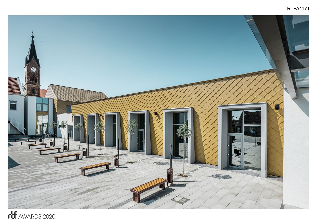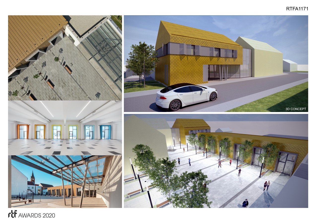 The concept was to make a building 3in1. Besides existing municipal building there is a new L shaped building. Inside the building, there’s a great hall for all kinds of different events and offices for non-profit organizations and administration. Outside of the building, there’s great public space for daily activities at open. All those three parts form the Center.