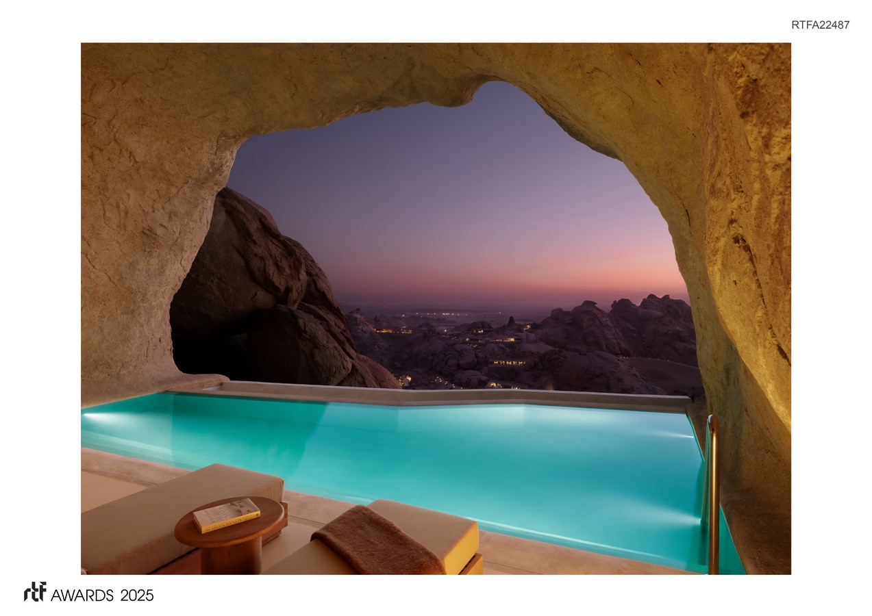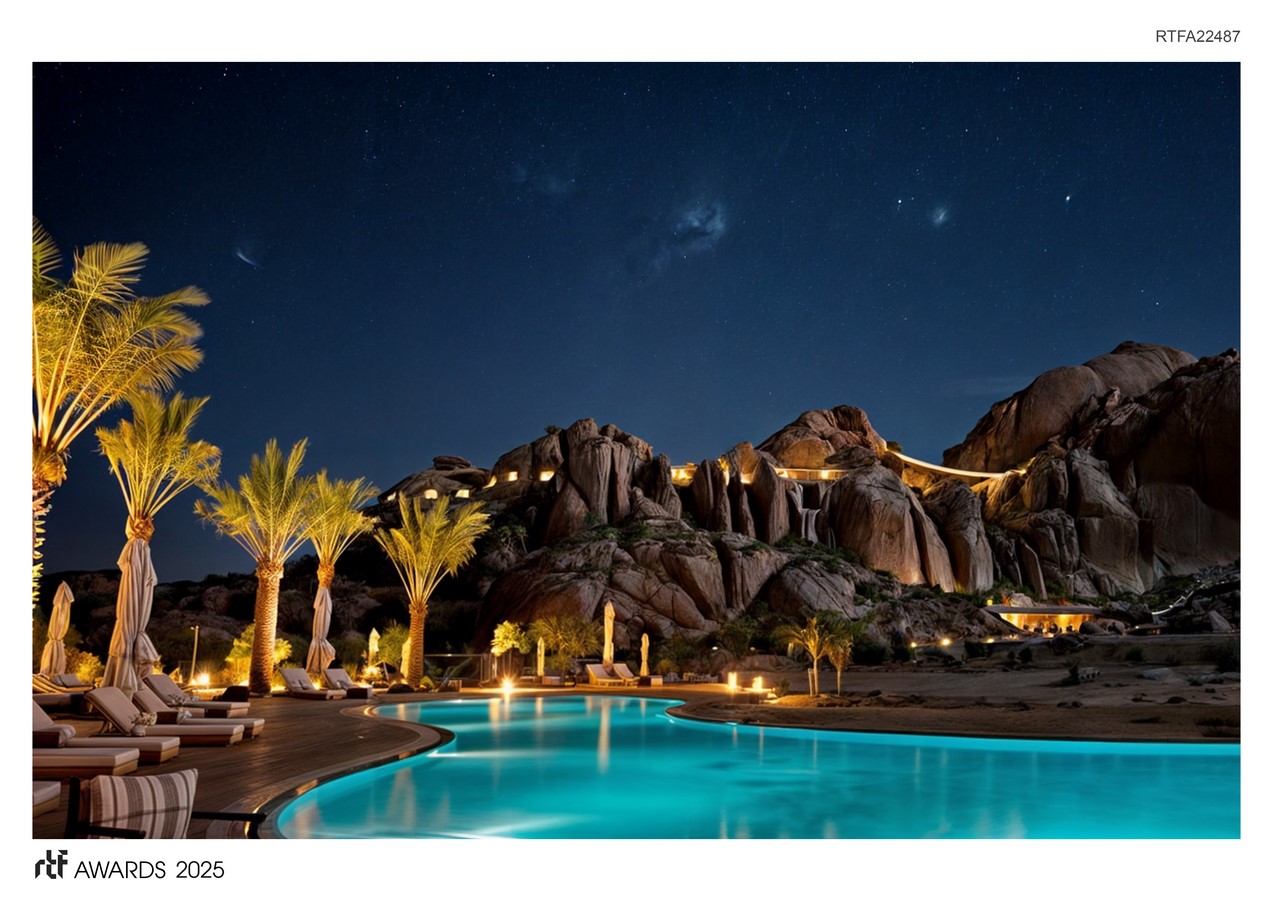 A key environmental challenge in desert resorts is managing the intense heat. By placing architecture in crevices, the buildings remain in shade for most of the day, significantly lowering heat gain and achieving natural passive cooling through wind created downwind of the main massif. This innovative approach reduces reliance on energy-intensive air conditioning, promoting energy efficiency while maintaining comfort for guests.