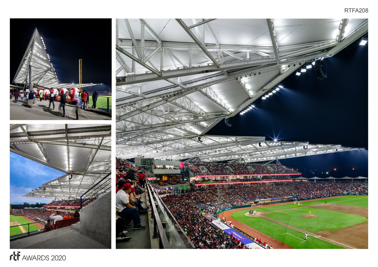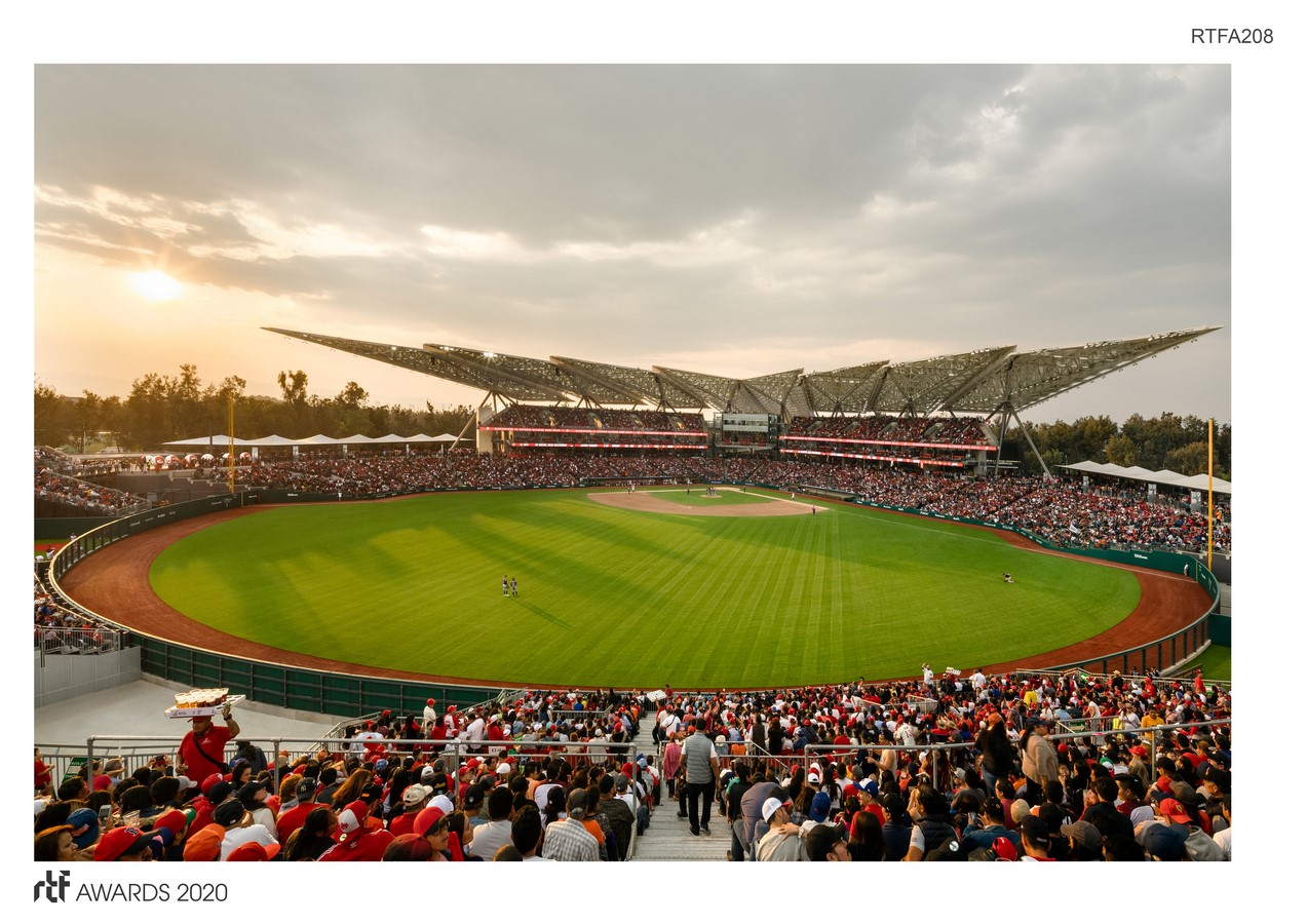 Architecture: The architectural design of the Diablos Rojos Stadium is the result of a collaboration (50/50) between the Mexican architects Francisco González Pulido (FGP-Atelier, Chicago, IL) and Alonso de Garay (Taller ADG, Mexico City) with the exception of the roof that is the idea and design of Francisco González Pulido (FGP-Atelier).