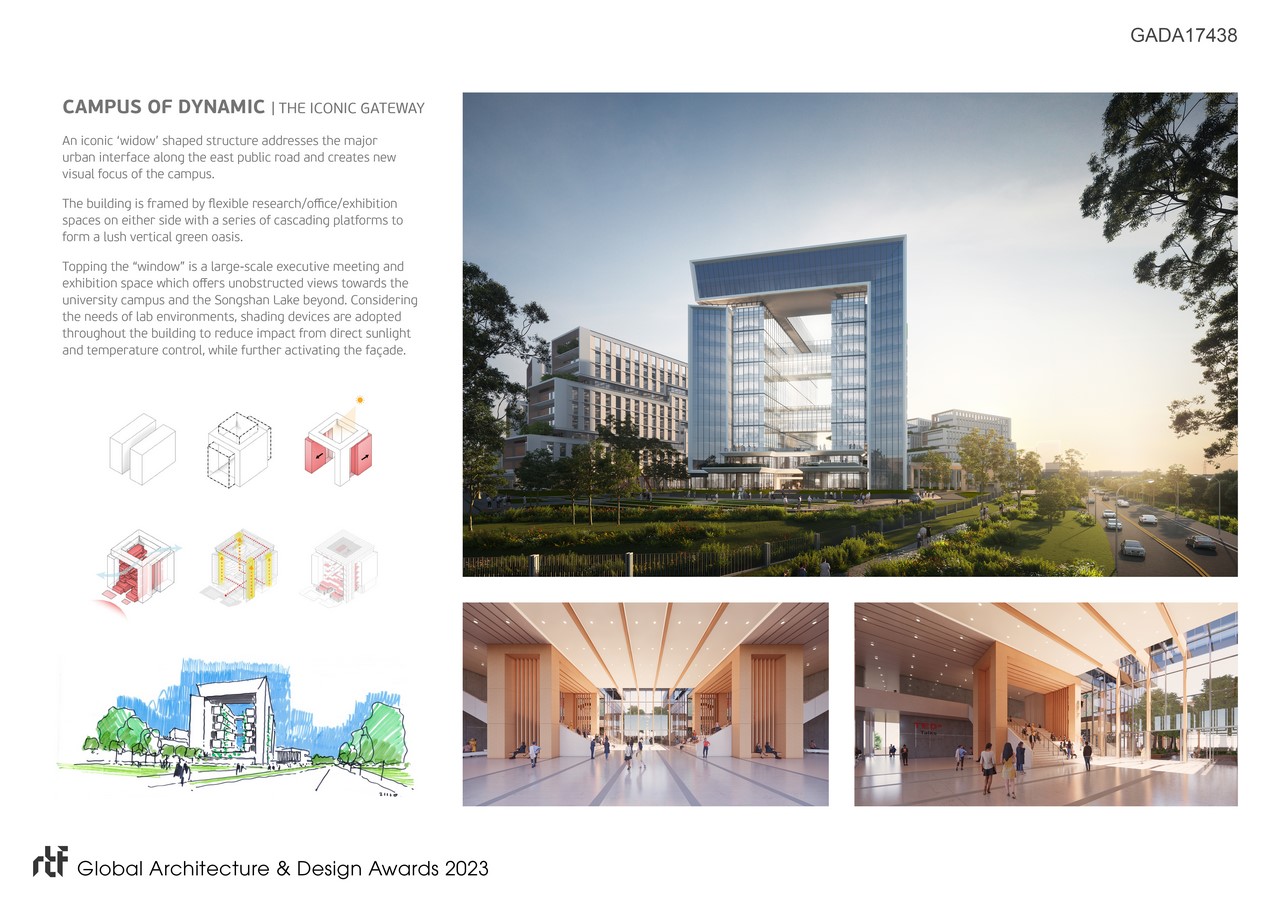 Dongguan University of Technology International Cooperation Zone is a world-class university campus in the heart of Dongguan, where state-of-the-art R&D facilities will be provided to attract talents from across the world and drive innovation of the entire city. Comprising large-scale research and teaching facilities, multifunctional spaces, residential areas and amenities for students and researchers, the design is to create a green campus with an emphasis on openness, collaboration and productivity.