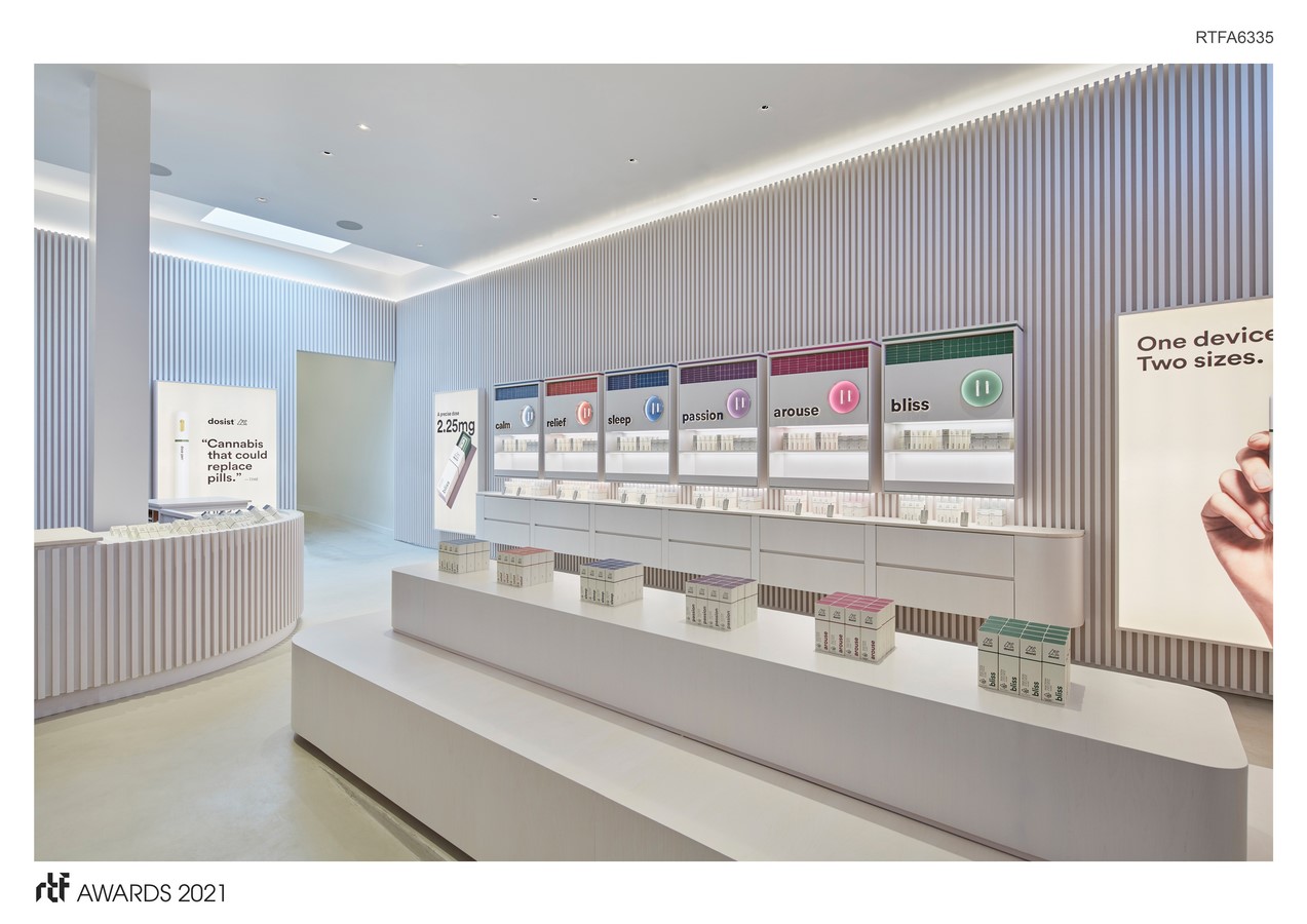 Dosist takes an ethical and sustainable approach to producing its products, which are made from fully recyclable and medical-grade materials. As legalization continues to attract more first-time cannabis users than ever before, this space is a unique brand touch-point for Dosist that is highly focused on education and awareness. Although a small footprint, this unique project redefines the standard of quality, brand integration and luxury setting – an elevated benchmark for a curated dispensary experience through design.