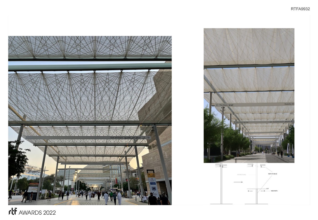 During the Expo 2020 Dubai® Event, the Shade Structure and Shade Canopy (the Shade Structure) will connect all spaces within the public realm, providing a structure that is architecturally distinct while offering a pleasant microclimate for all visitors to the venue. The design solution for the Shade Structure had to be an innovative solution which will complement the landscaping and natural vegetation. This shall be done in a way that helps develop the Legacy vision of the site.
