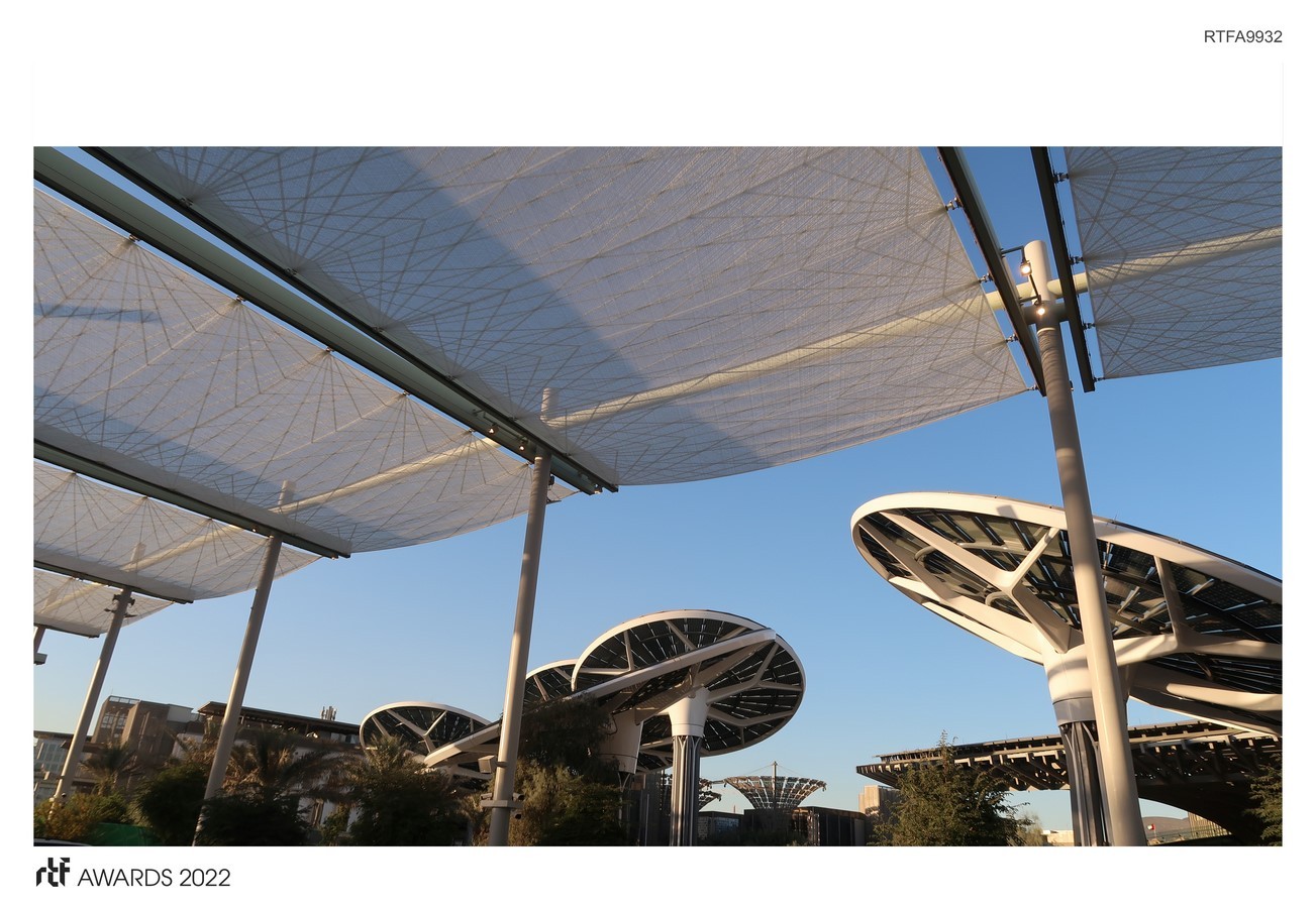 During the Expo 2020 Dubai® Event, the Shade Structure and Shade Canopy (the Shade Structure) will connect all spaces within the public realm, providing a structure that is architecturally distinct while offering a pleasant microclimate for all visitors to the venue. The design solution for the Shade Structure had to be an innovative solution which will complement the landscaping and natural vegetation. This shall be done in a way that helps develop the Legacy vision of the site.
