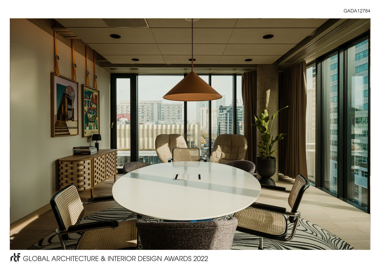 The entire office is decorated with works by Polish artists (Martyna Berger, Nikodem Szpunar, Maciej Błaźniak) and an international group of architects associated with the Desplans internet gallery.