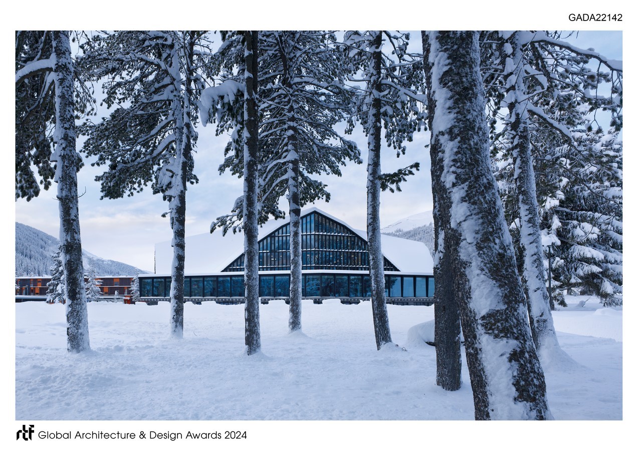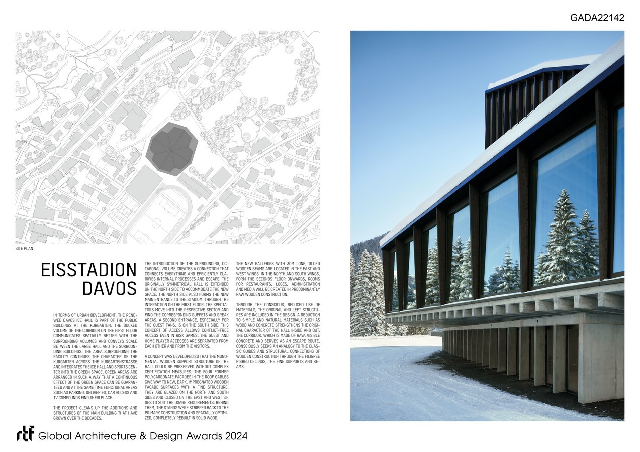 In terms of urban development, the renewed Davos ice hall is part of the public buildings at the Kurgarten. The docked volume of the corridor on the first floor communicates spatially better with the surrounding volumes and conveys scale between the large hall and the surrounding buildings.